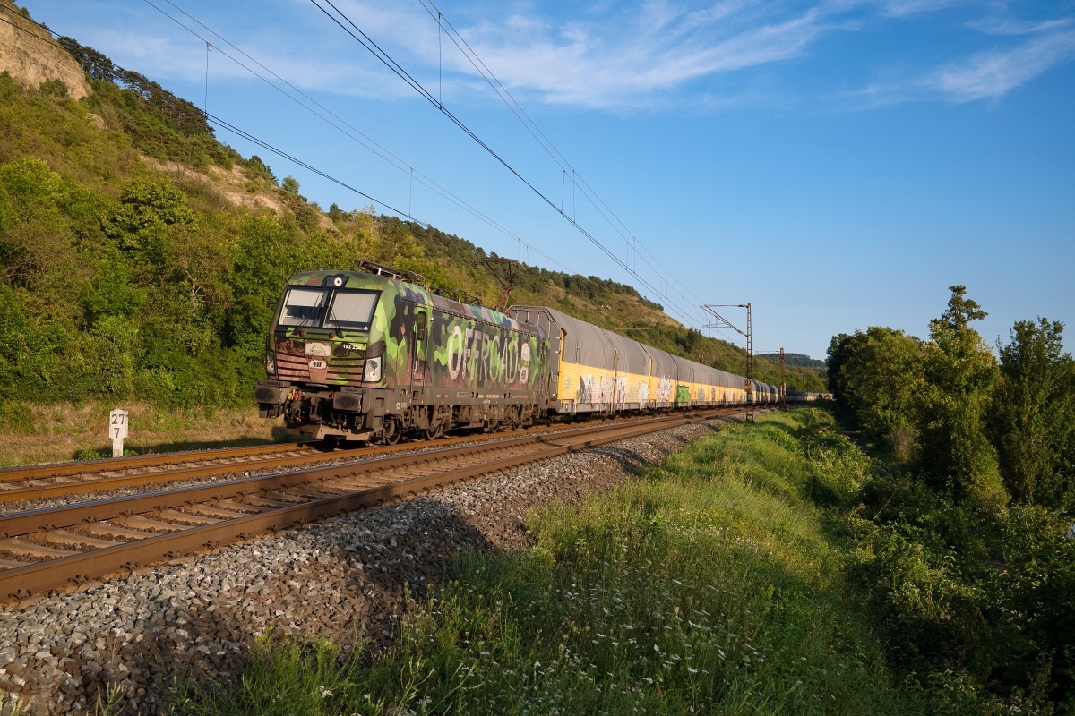 "MMV" (Magyar Magánvasút Zrt., Budapest) war hier am 14.09.2021 im Morgenlicht bei Retzbach-Zellingen (NREZ) mit
