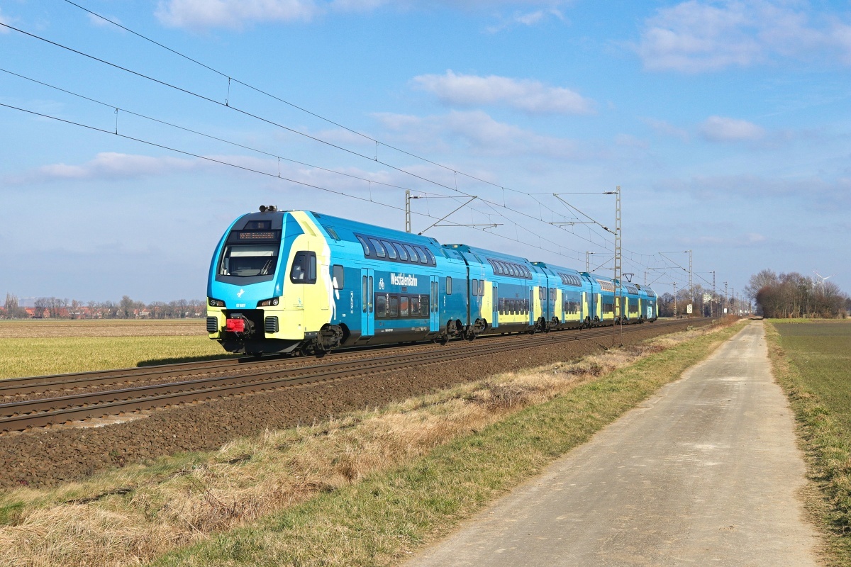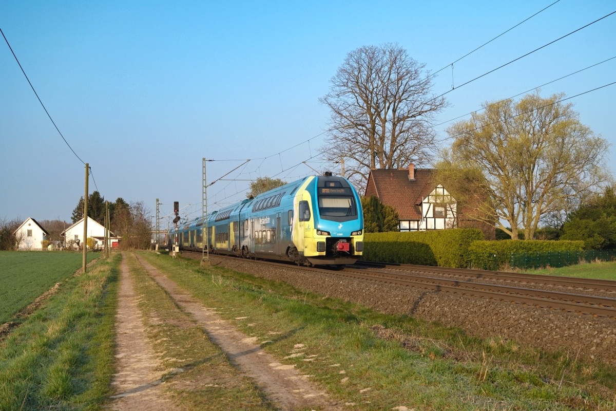 am 21.03.2025 bei Wierthe als RE60 (95775) von Rheine nach Braunschweig