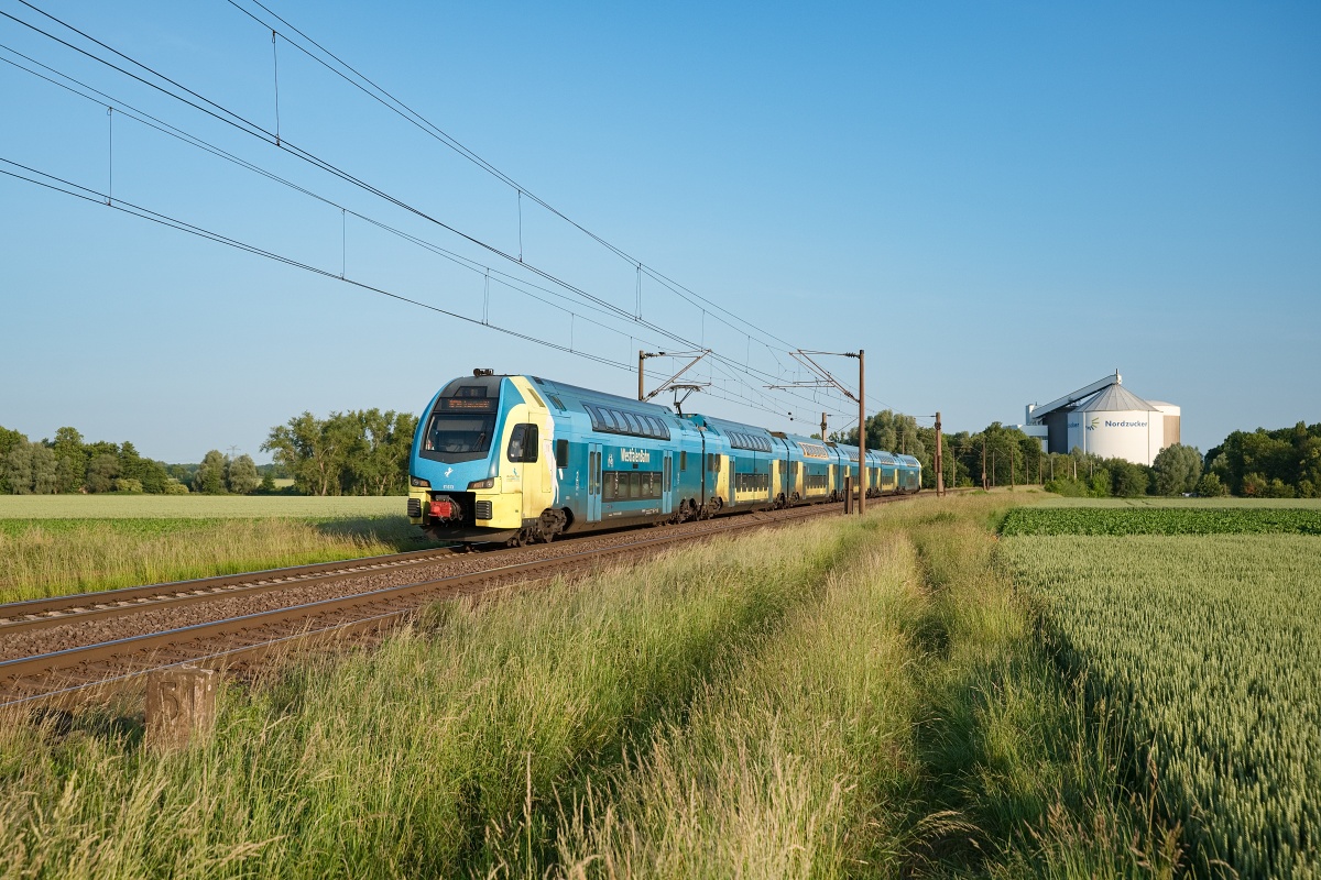 sechsteilige Doppelstocktriebzüge auf der Linie Braunschweig–>Hannover