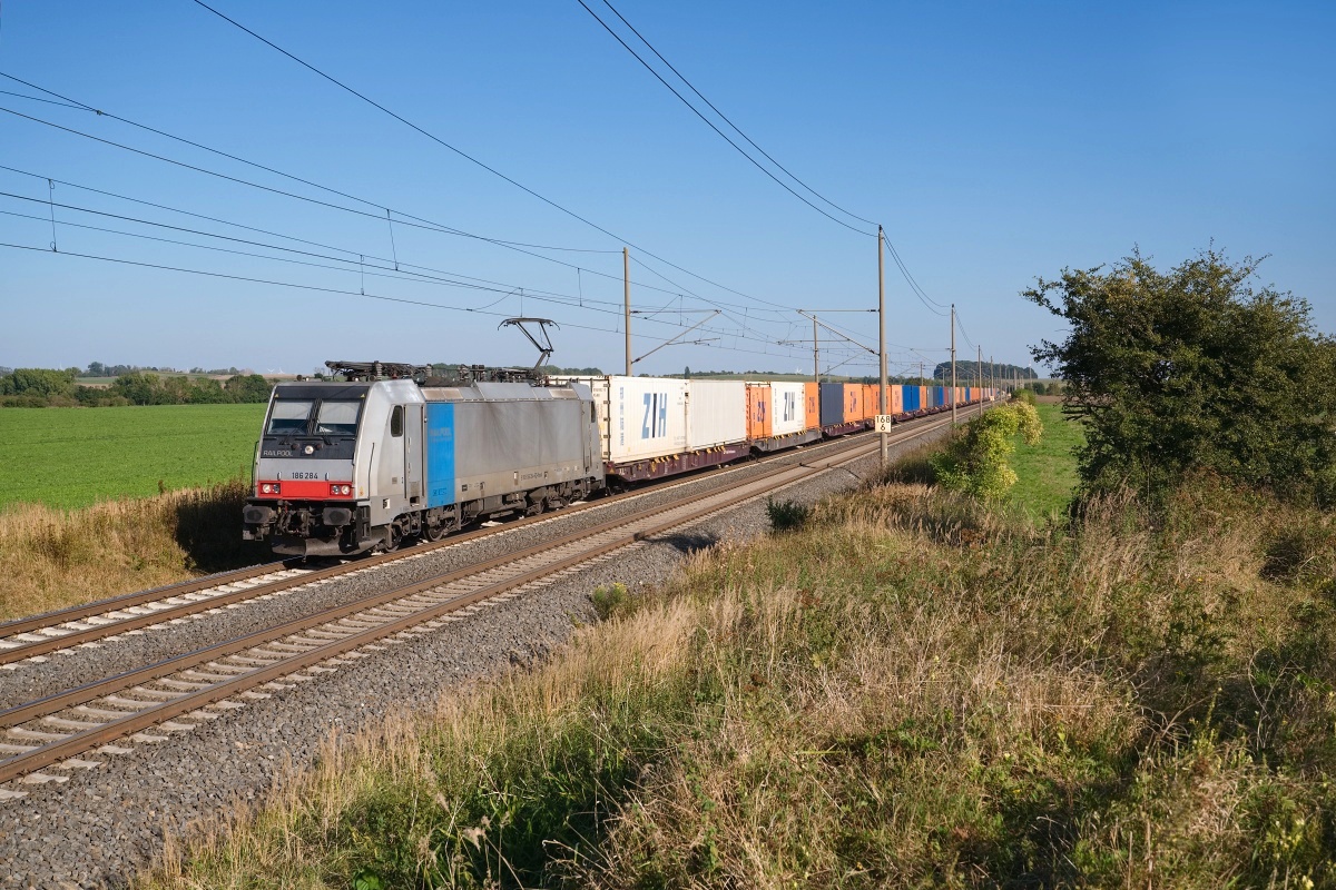 Dto. 186 438-8 am 11.08.2021 bei Lindhorst (HLH) Vornhagen mit einem