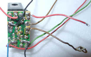 - zwei weitere Kabel, eins rot, das andere grün, gehen vom elektronischen