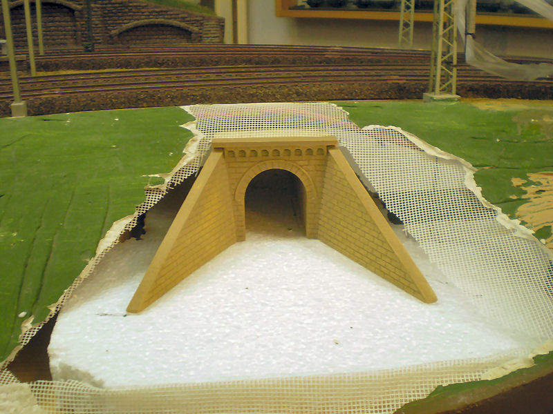 dem Styroporuntergrund verklebt. Der Fliegendraht hat auch seinen Anschluss