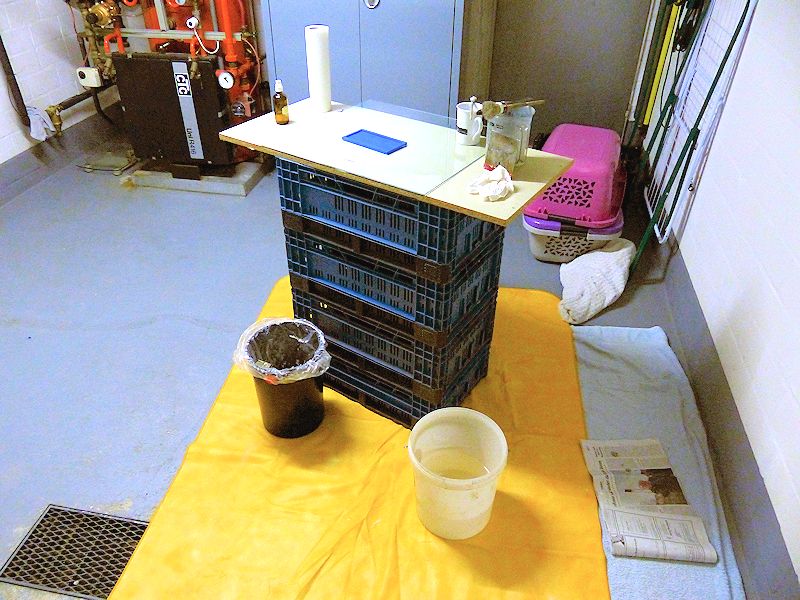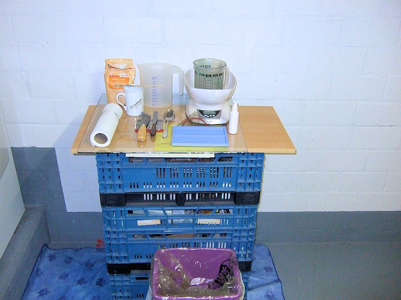 Klapp-Gemüsekisten. Zum Arbeiten wurde dann eine Stelle im Raum gesucht, an