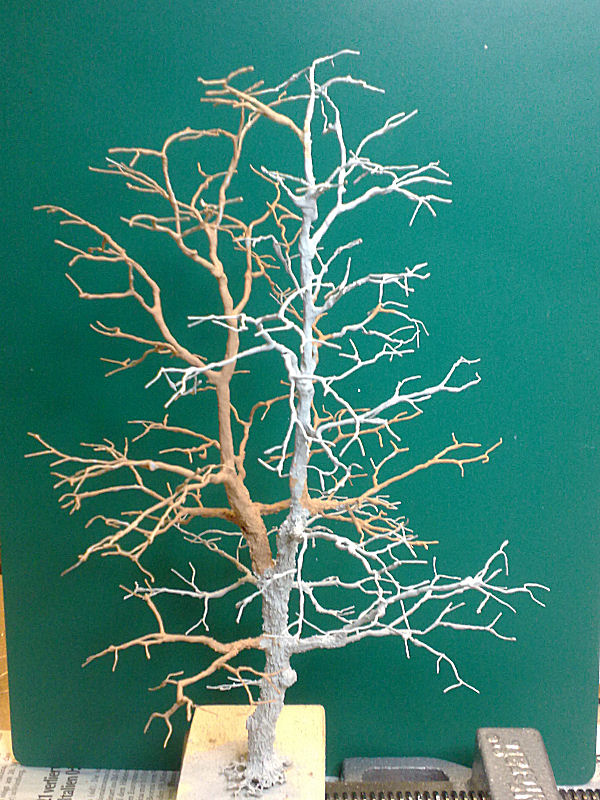 1) das der Baum mit einer dünnen Soße aus drei Pinselspitzen Revell Matt Schwarz