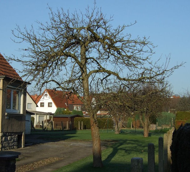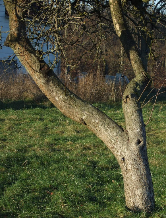 Und zwei Apfelbäume mit den Farbspielen am Stamm.