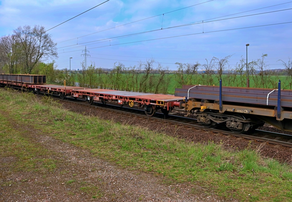 Gleistransport auf 2-achsigen Niederboardwagen mit fertig gebauten