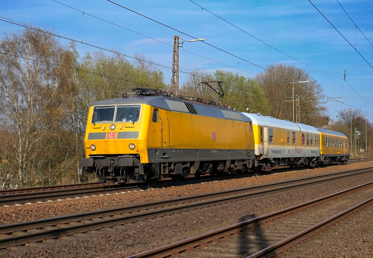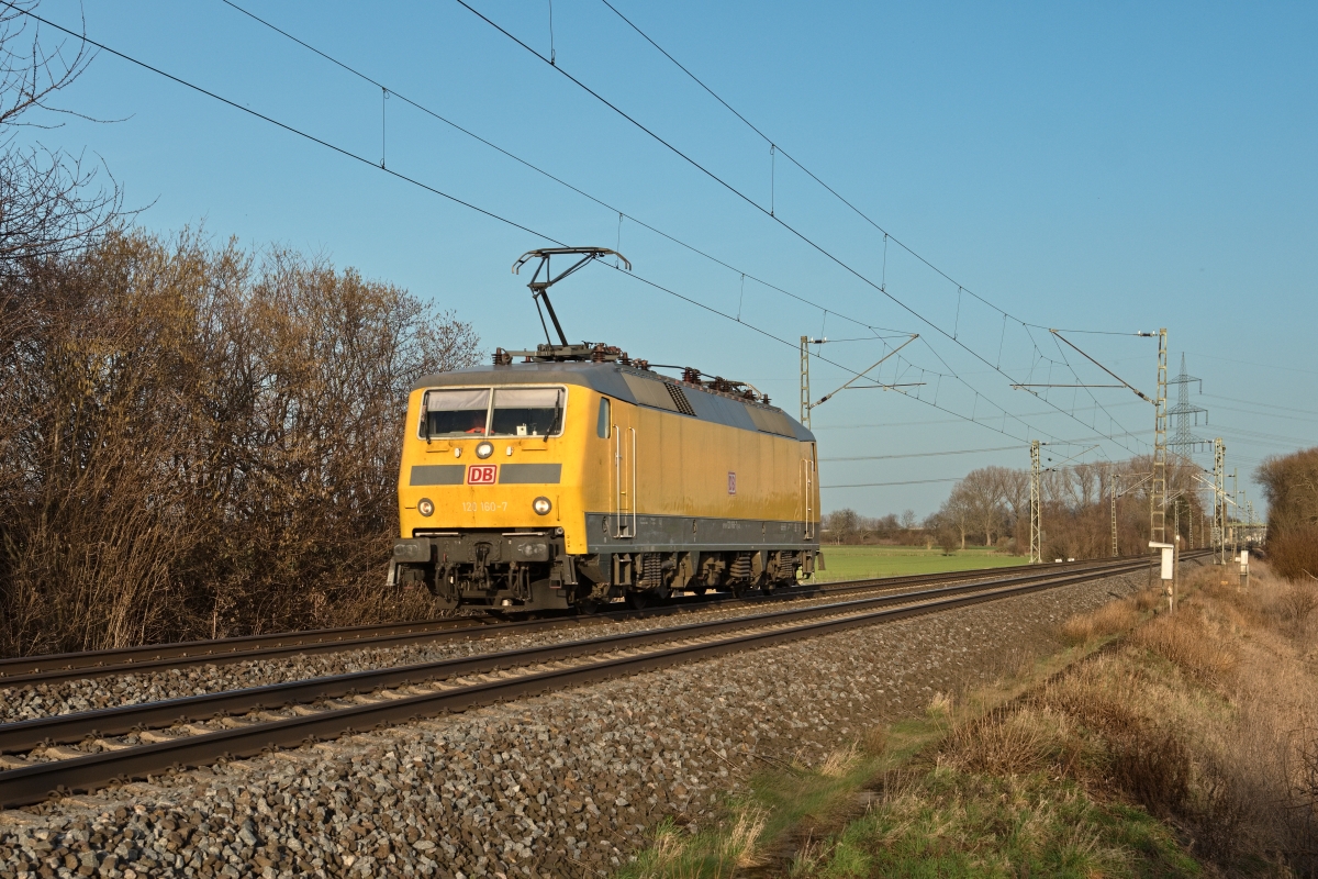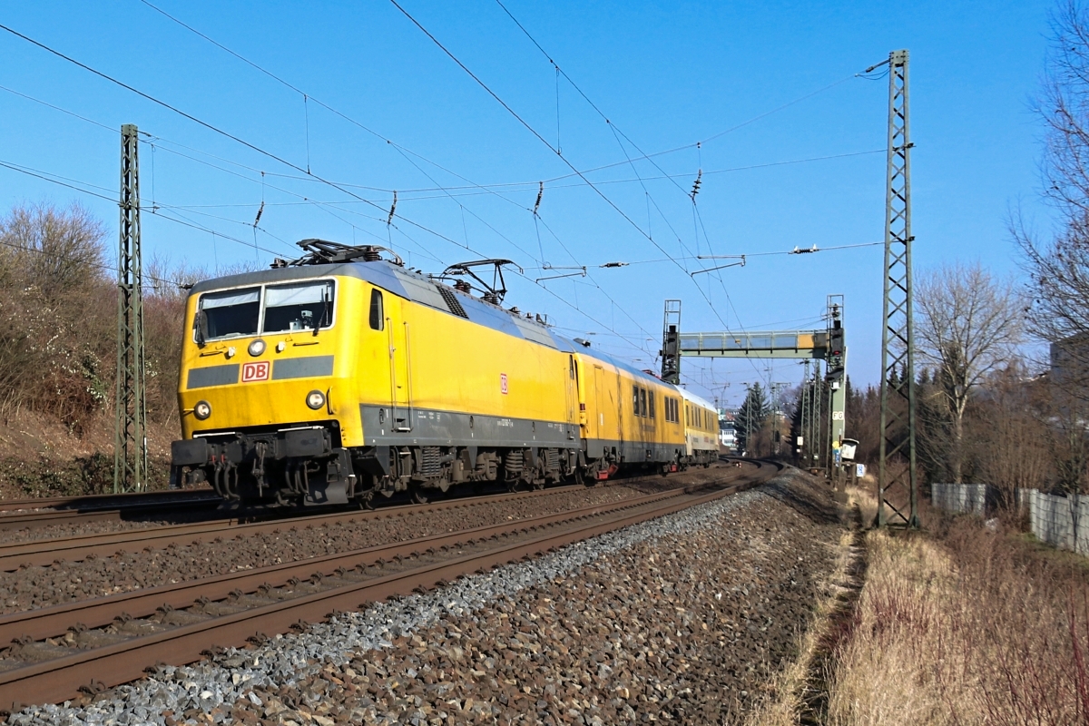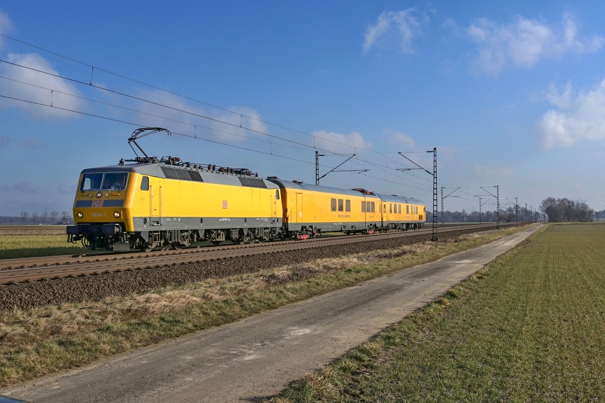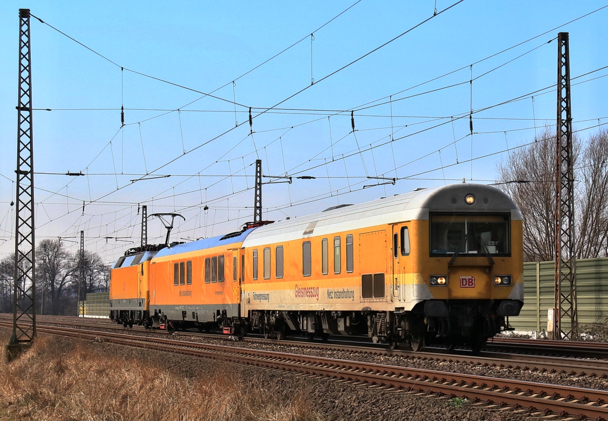 Dto. Gleismesszug mit 120 160-7 und RAILab 3 am 13.03.2017 Steuerwagen voraus Lindhorst