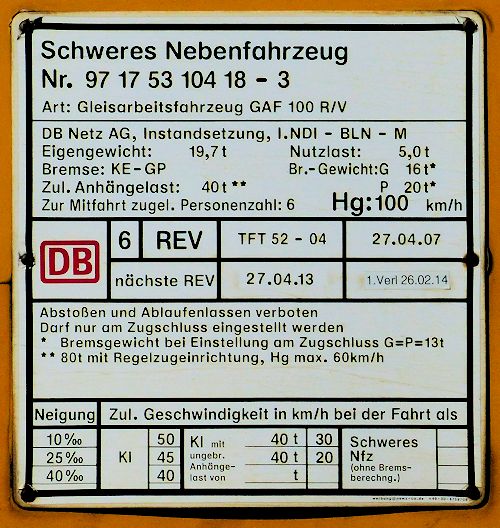 Gleisarbeitsfahrzeug GAF 100 R/V (97 17 53 104 18-3) - Hbf Stralsund