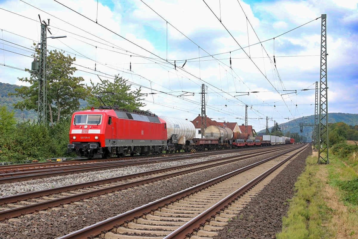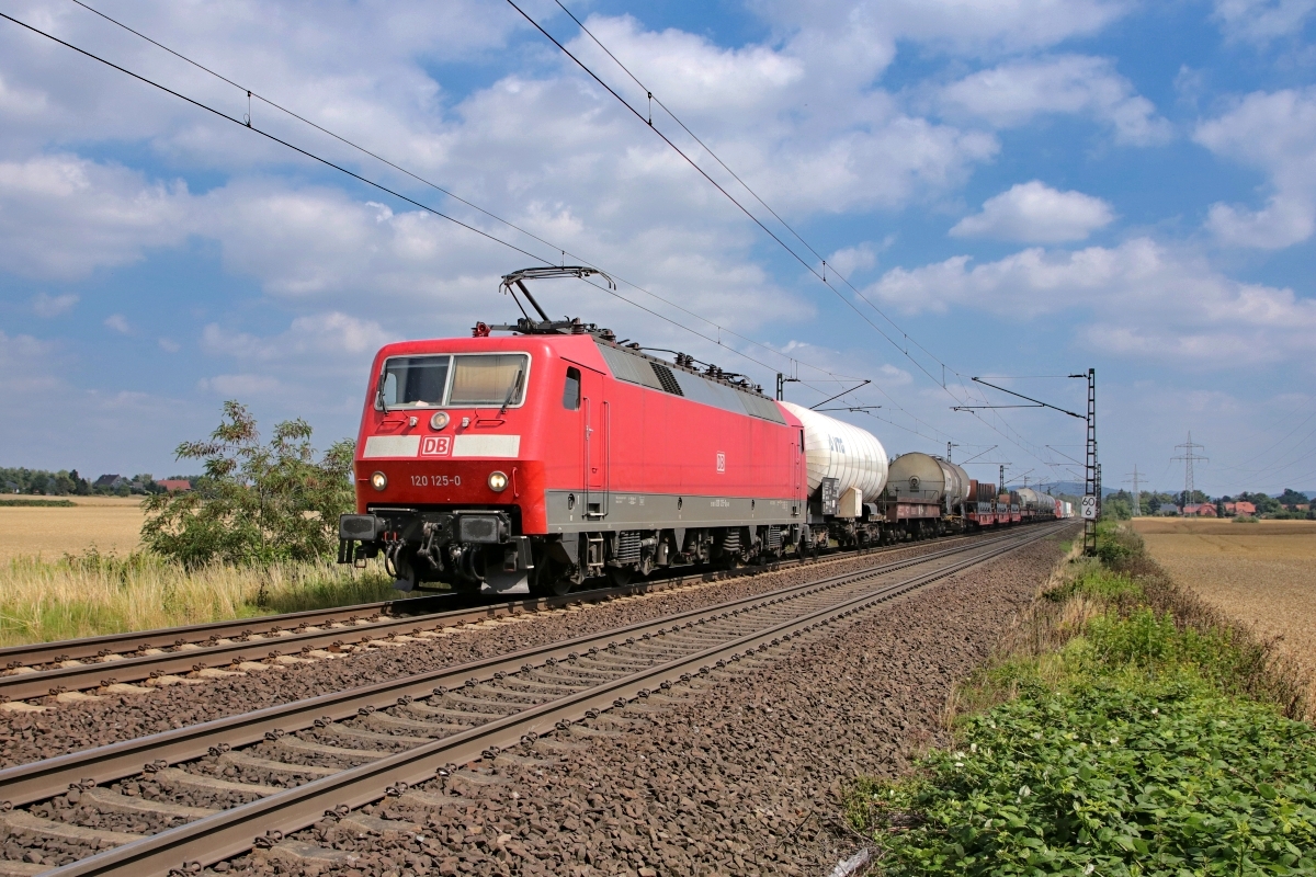 Dto. 120 125-0 am 17.08.2018. Hier war die Lok bei Vennebeck mit dem
