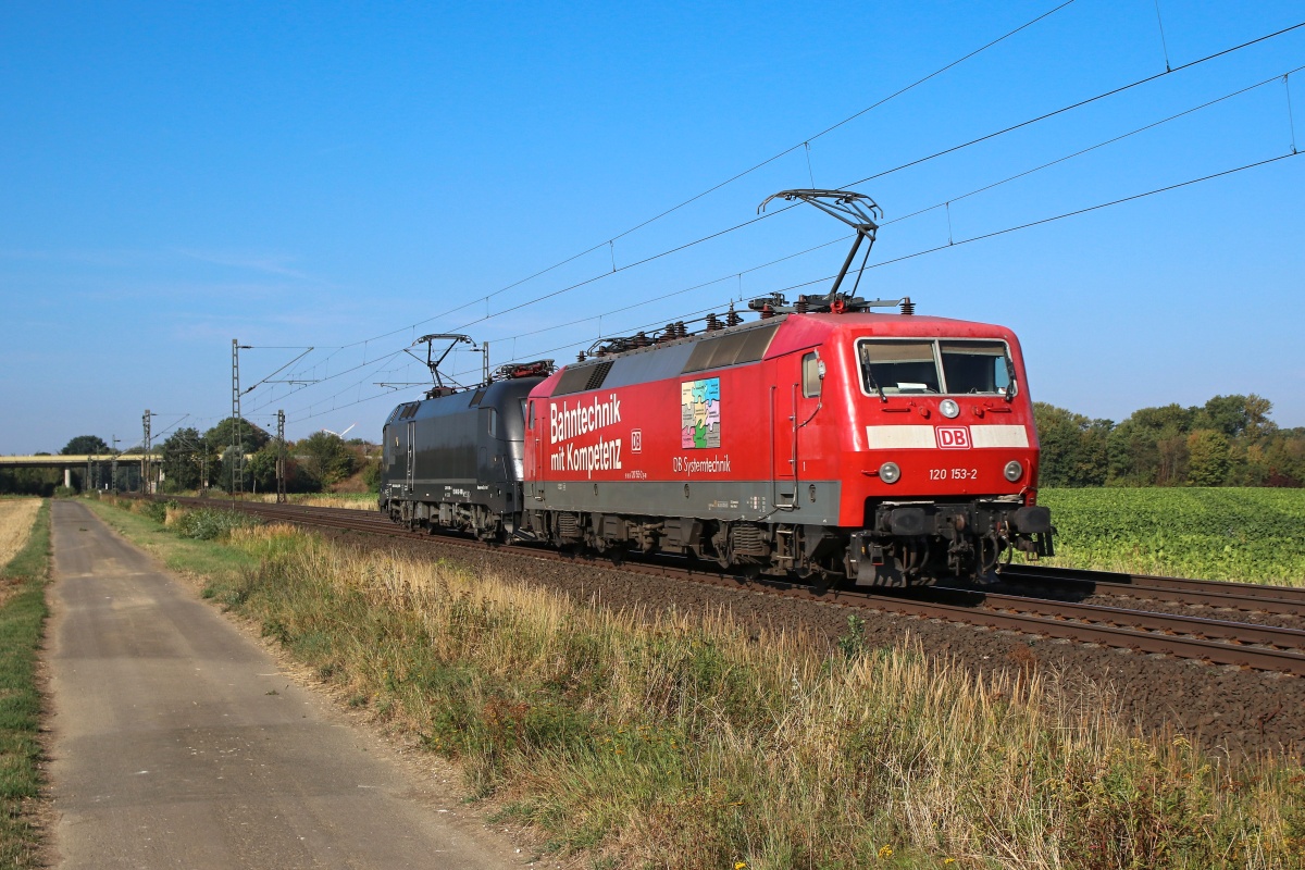 120 153-2 und 182 569-4 waren hier am 05.09.2018 als Tfzf bei Lindhorst Rtg.