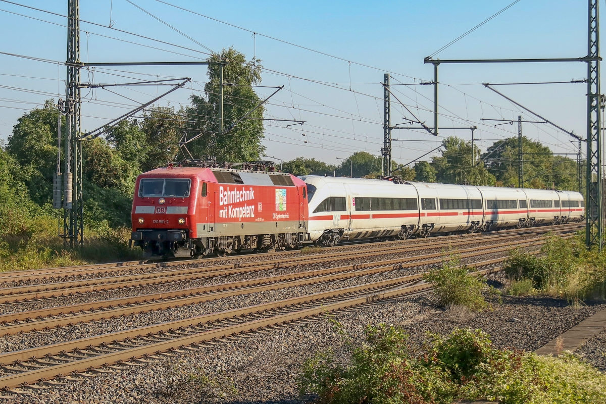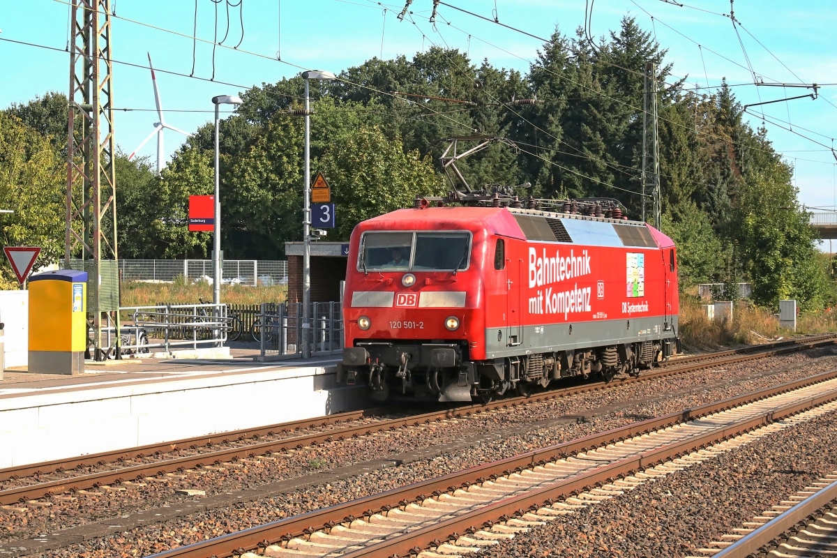 Kompetenz 120 501-2 (NVR Nr. 91 80 6 120 501-2 D-DB) fuhr hier am 07.09.2016 in Suderburg