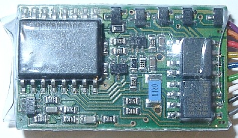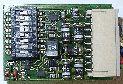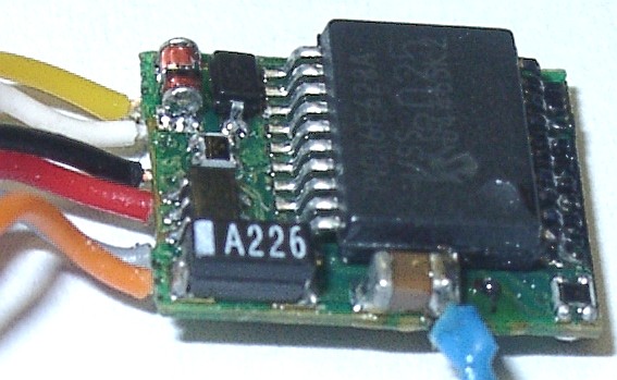 Decoder 10732 aus neuer Roco BR 043 68320 --------------------------------------------------------------------------------------------------------------------------------------------------------------------------------------------------------------------------------------------------------------------- Kühn T 145 Kühn N025 mit zusätzlich gelegtem blauen Kabel