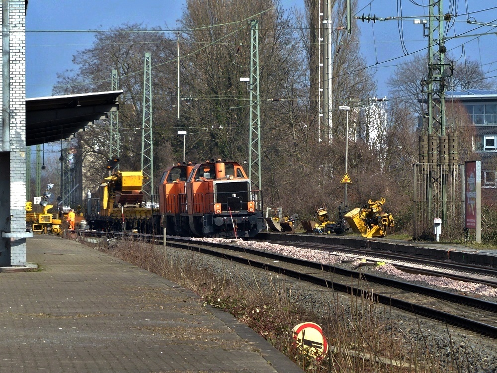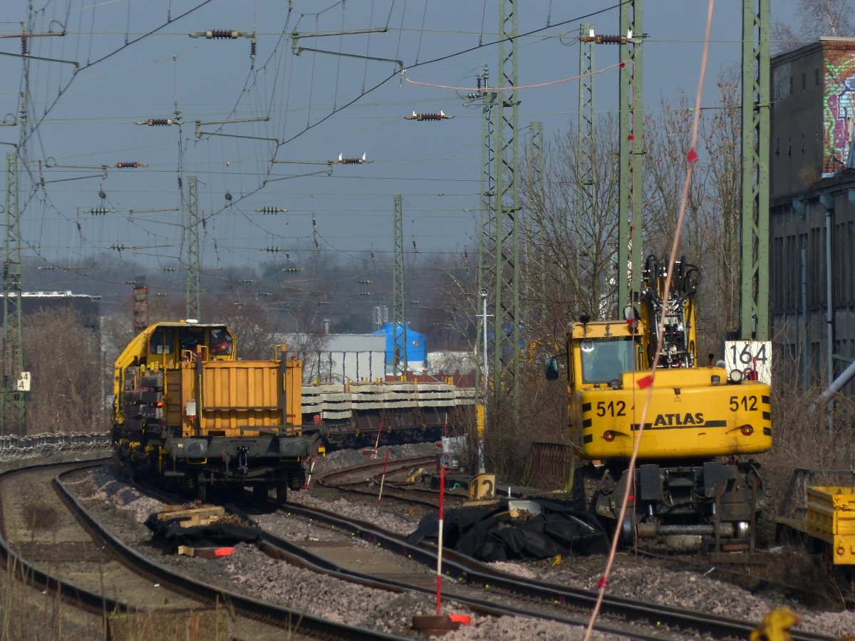 Gleisbaumaschinen, und eine ganze Reihe Wagen