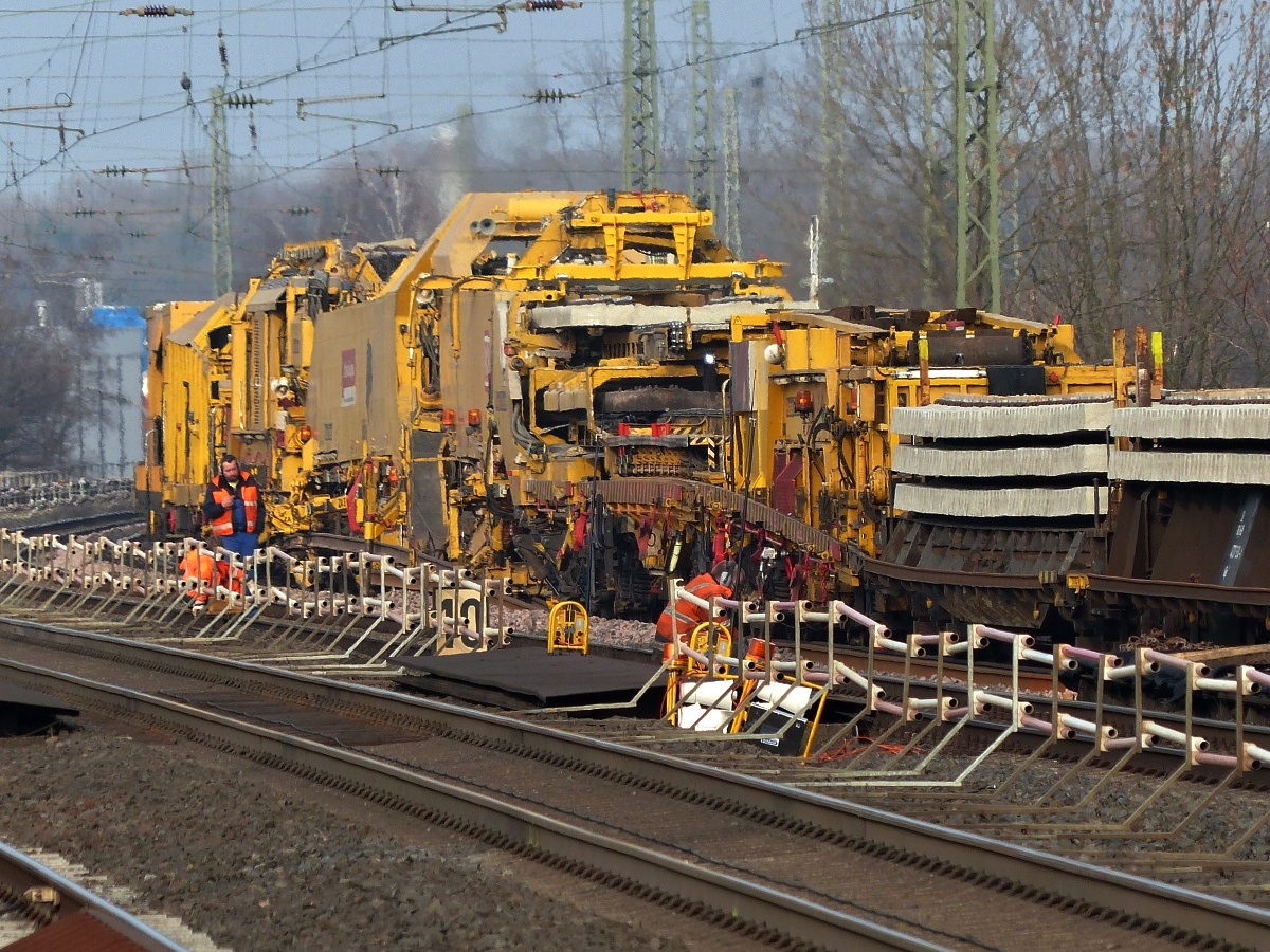 Im Bild ist auch die Gleisverlegemaschine zu sehen. Damit wird