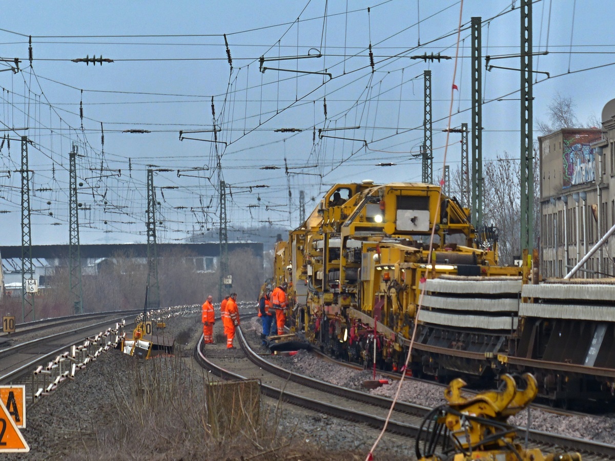 Der Bereich in dem die linke PK oben die neuen Betonschwellen nachlegt und