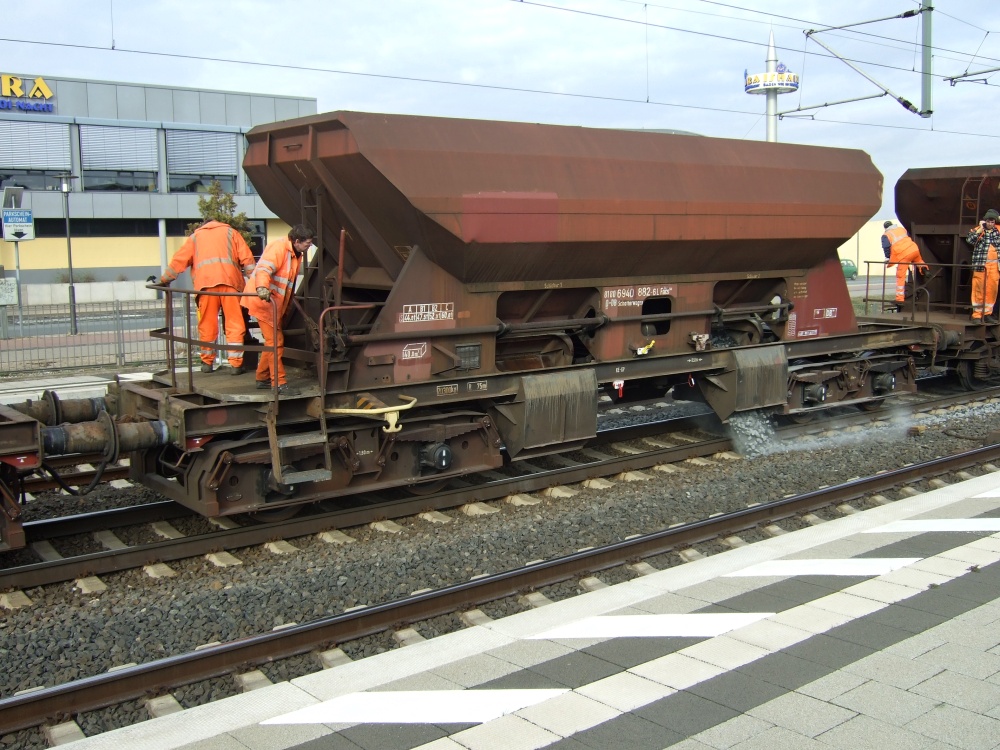 der Bahnbau Gruppe in Bielefeld Hbf bei der Arbeit.