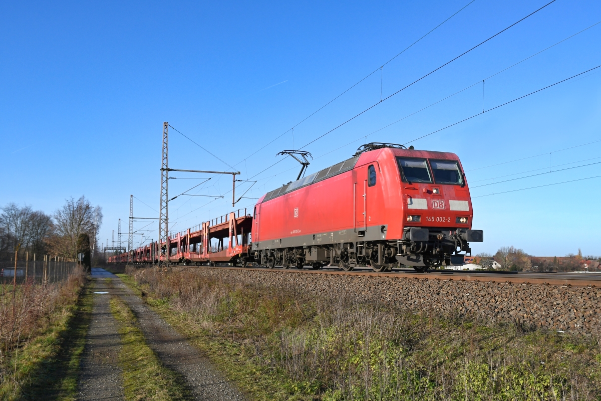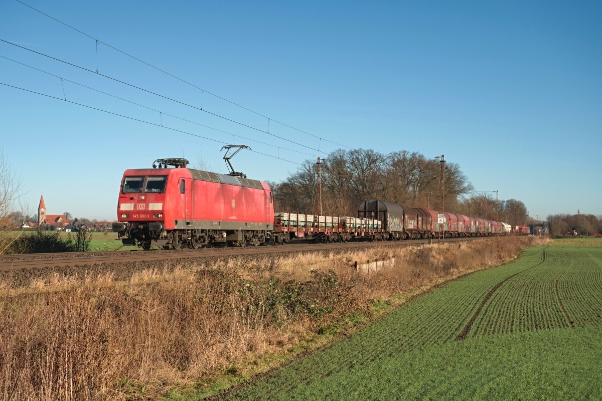 Dto. 145 002-2 am 11.01.2022 bei Kirchhorsten (HKHN) mit einem EZ Rtg.