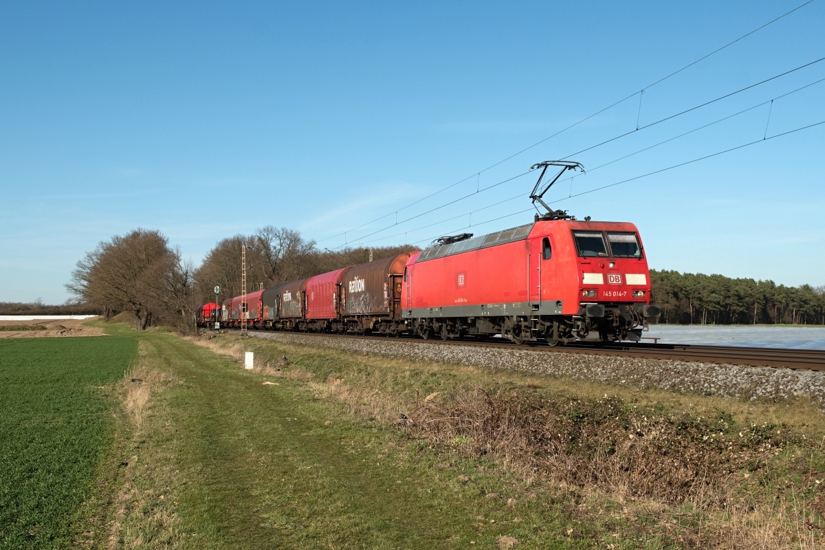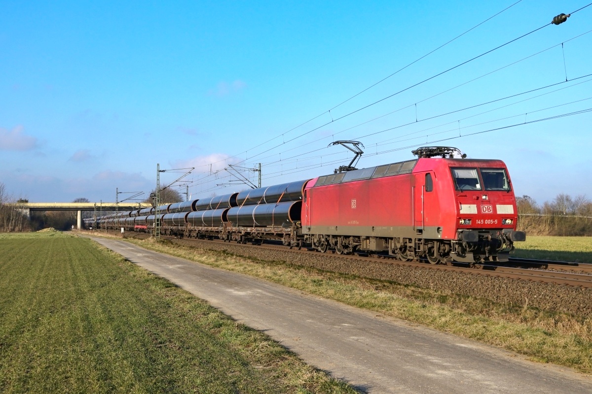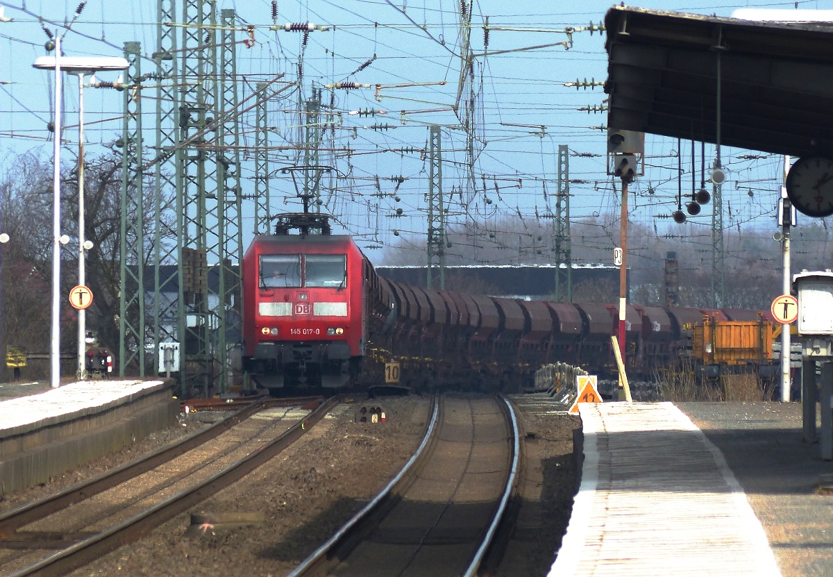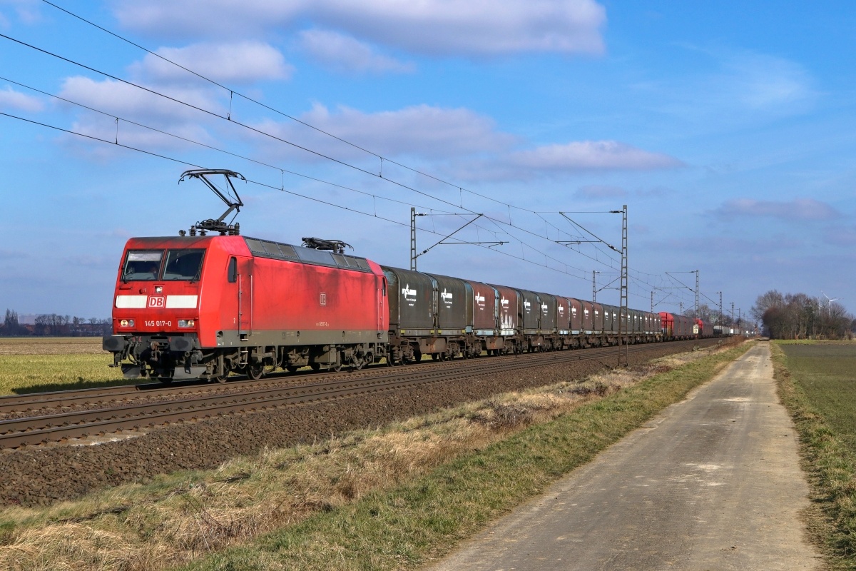 Dto. 145 017-0 am 23.02.2018 mit dem "Nievenheimer" bei Lindhorst (HLH) Rtg.