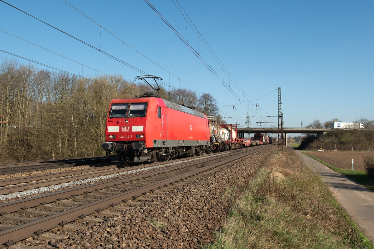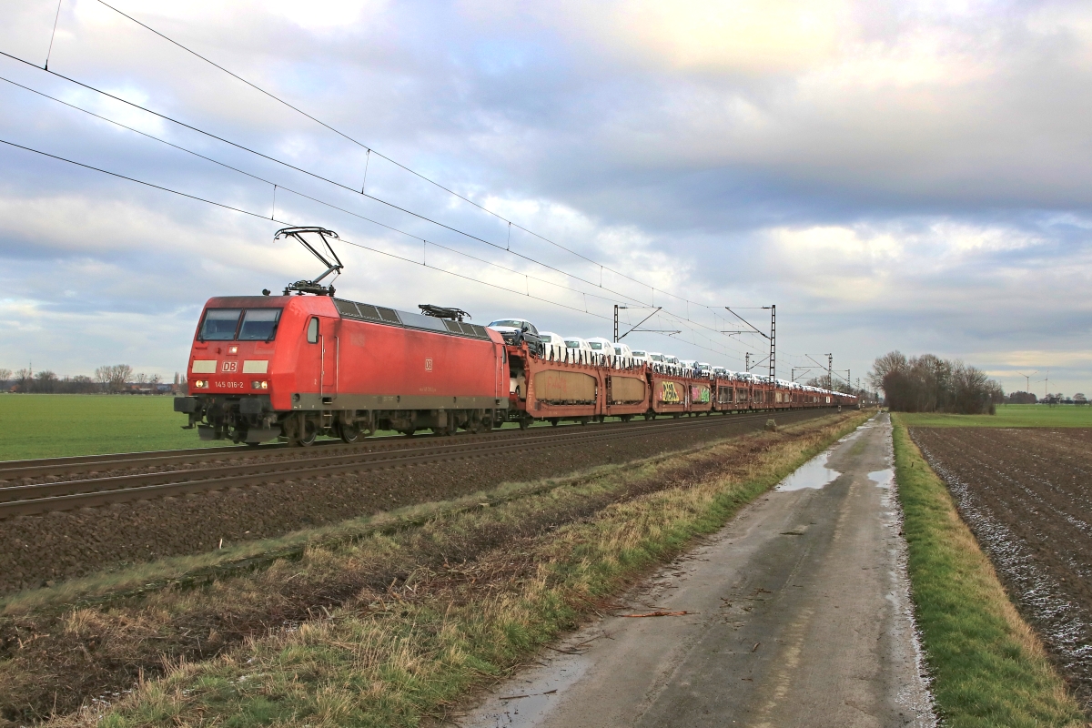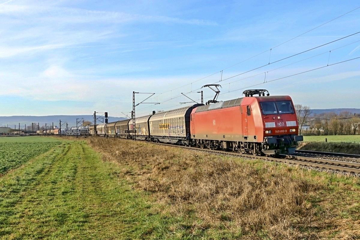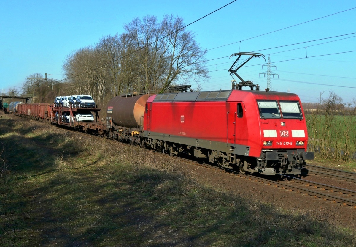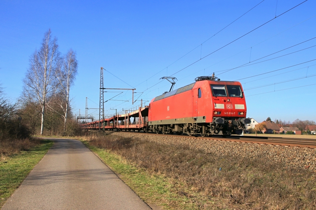 Dto. 145 017-0 am 23.02.2018 mit dem "Nievenheimer" bei Lindhorst (HLH) Rtg.