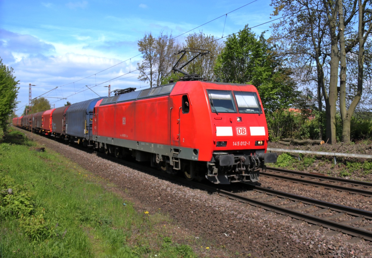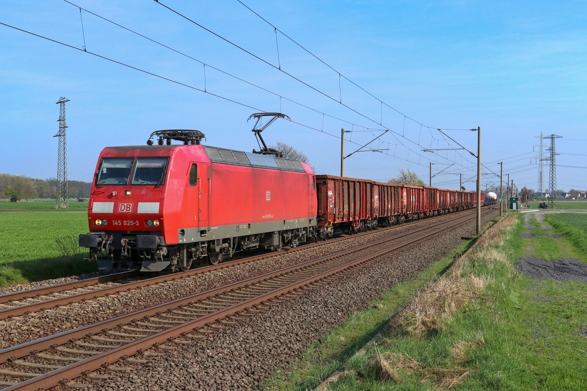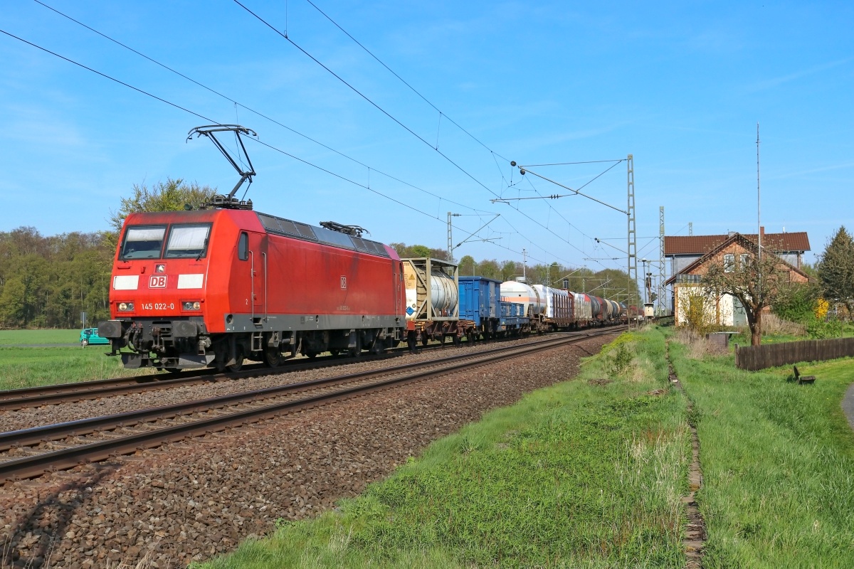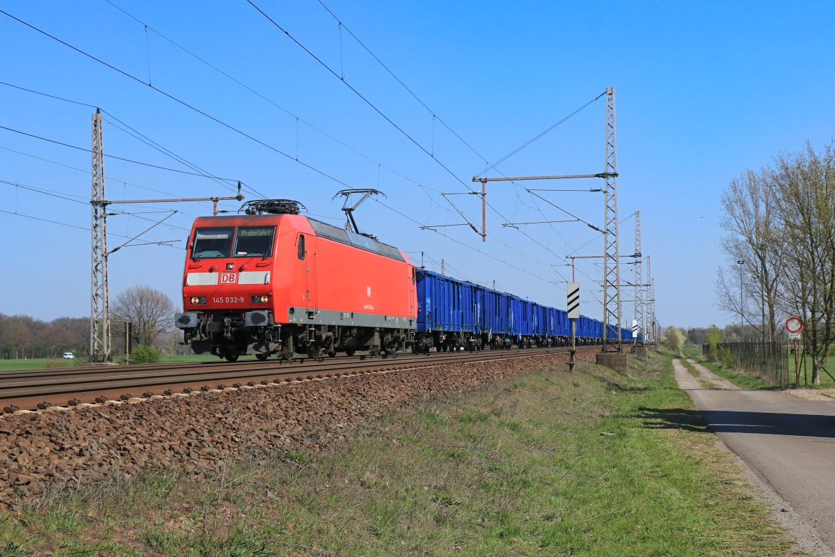 Dto. 145 033-7 am 23.04.2020. Die Lok passierte hier Poggenhagen (HPOG)