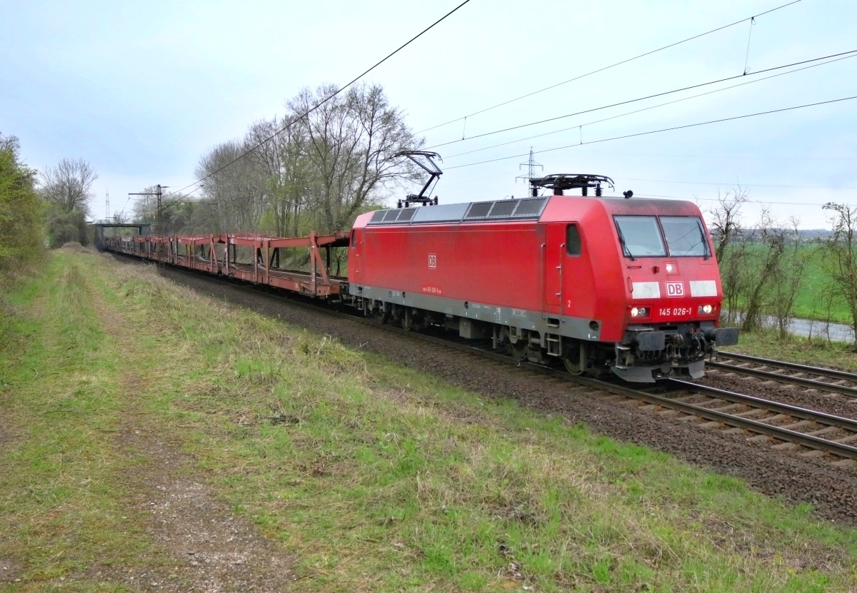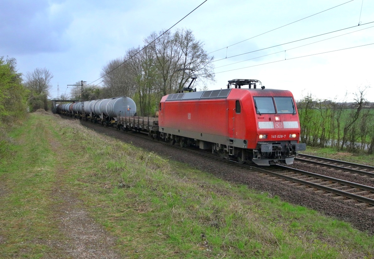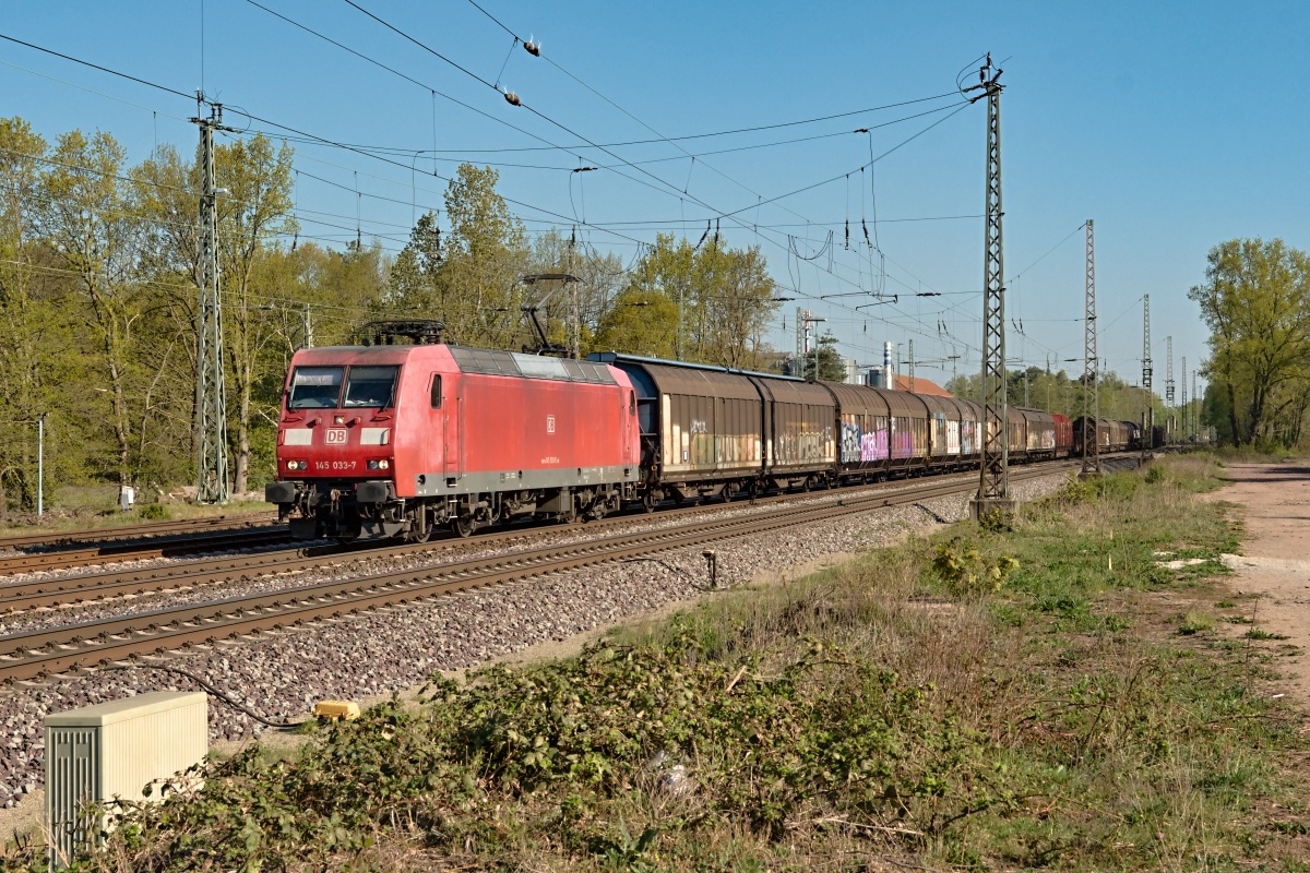 Dto. 145 033-7 am 23.04.2020. Die Lok passierte hier Poggenhagen (HPOG)