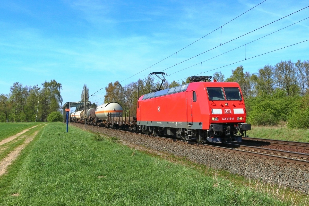 Dto. 145 005-5 am 04.05.2018. Hier war die Lok bei Banteln (HBAN)