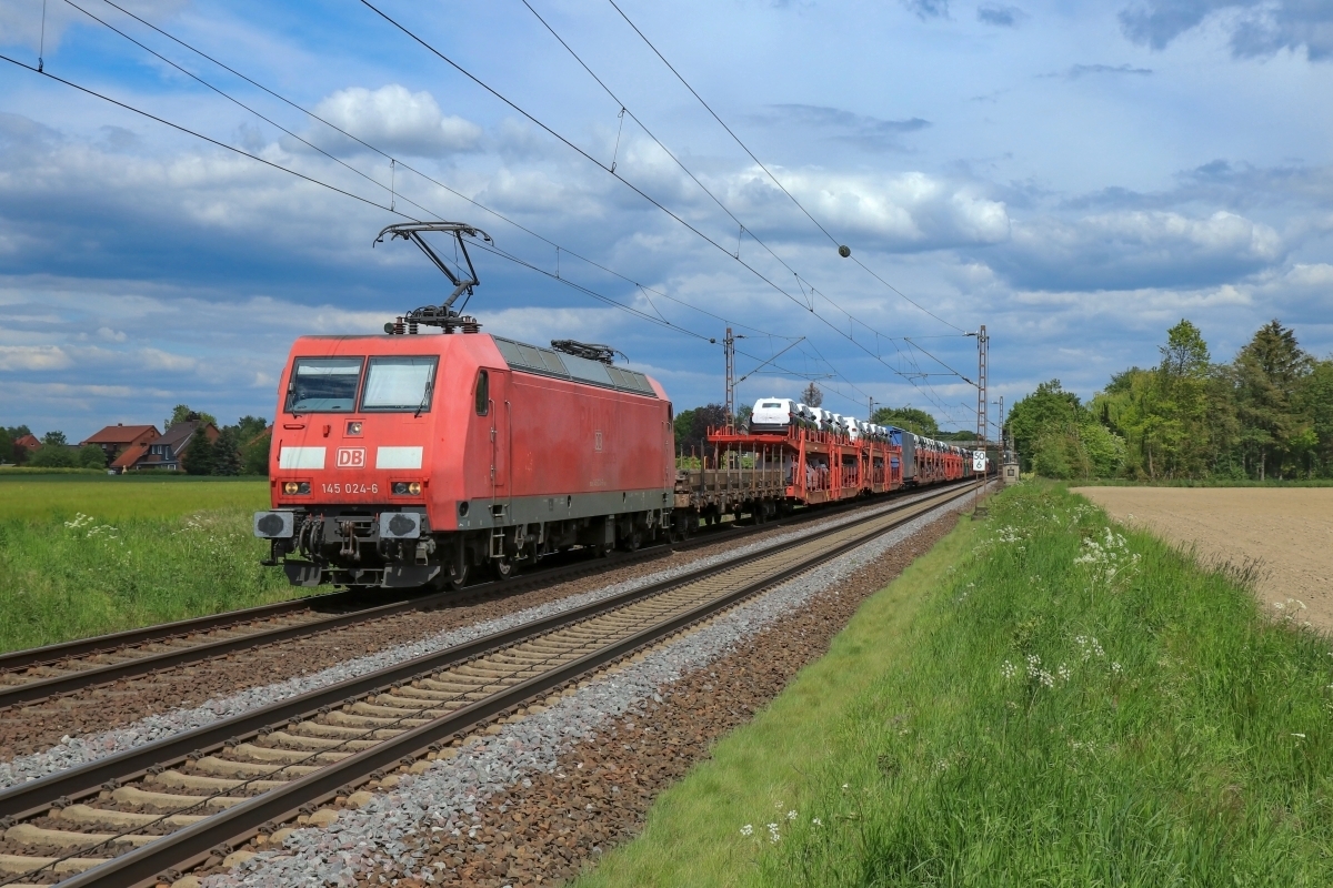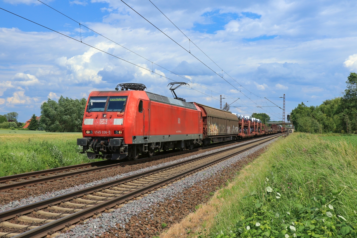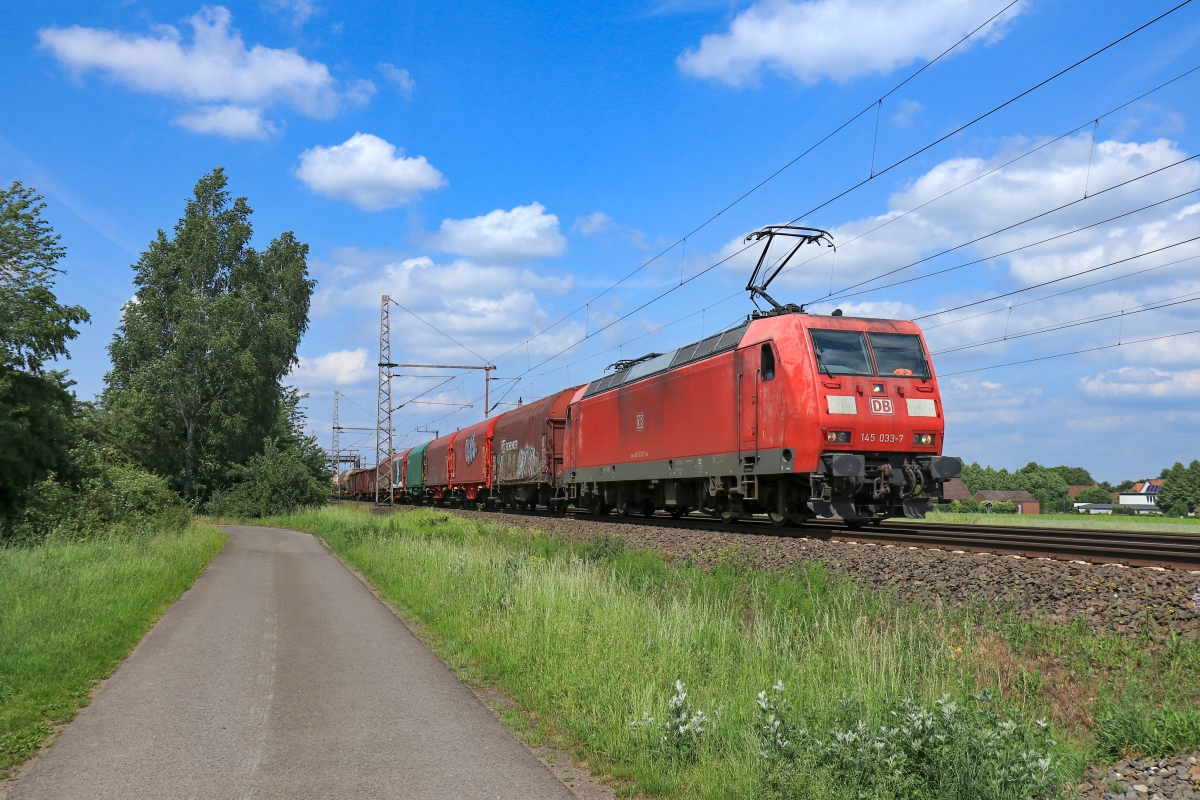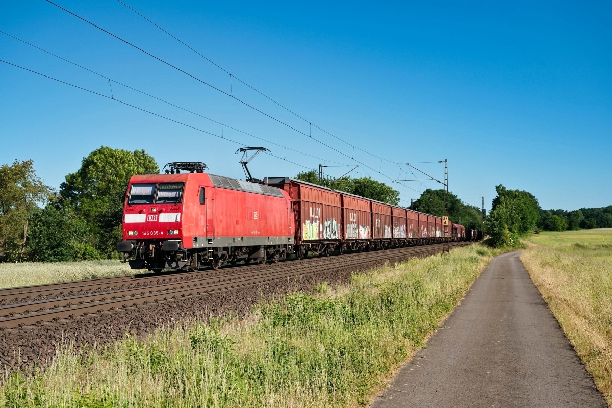 Dto. 145 039-4 am 14.06.2023 bei Eilvese (HEIV) mit einem EZ Rtg.