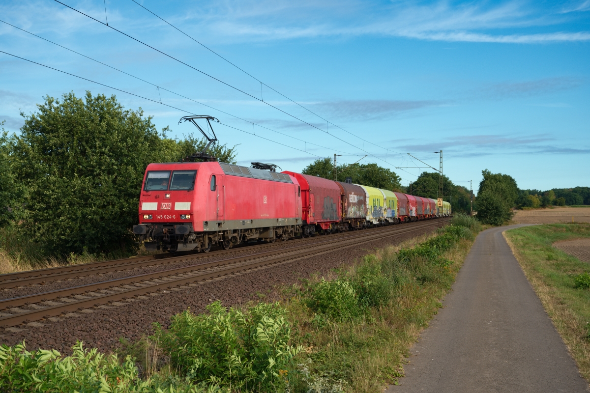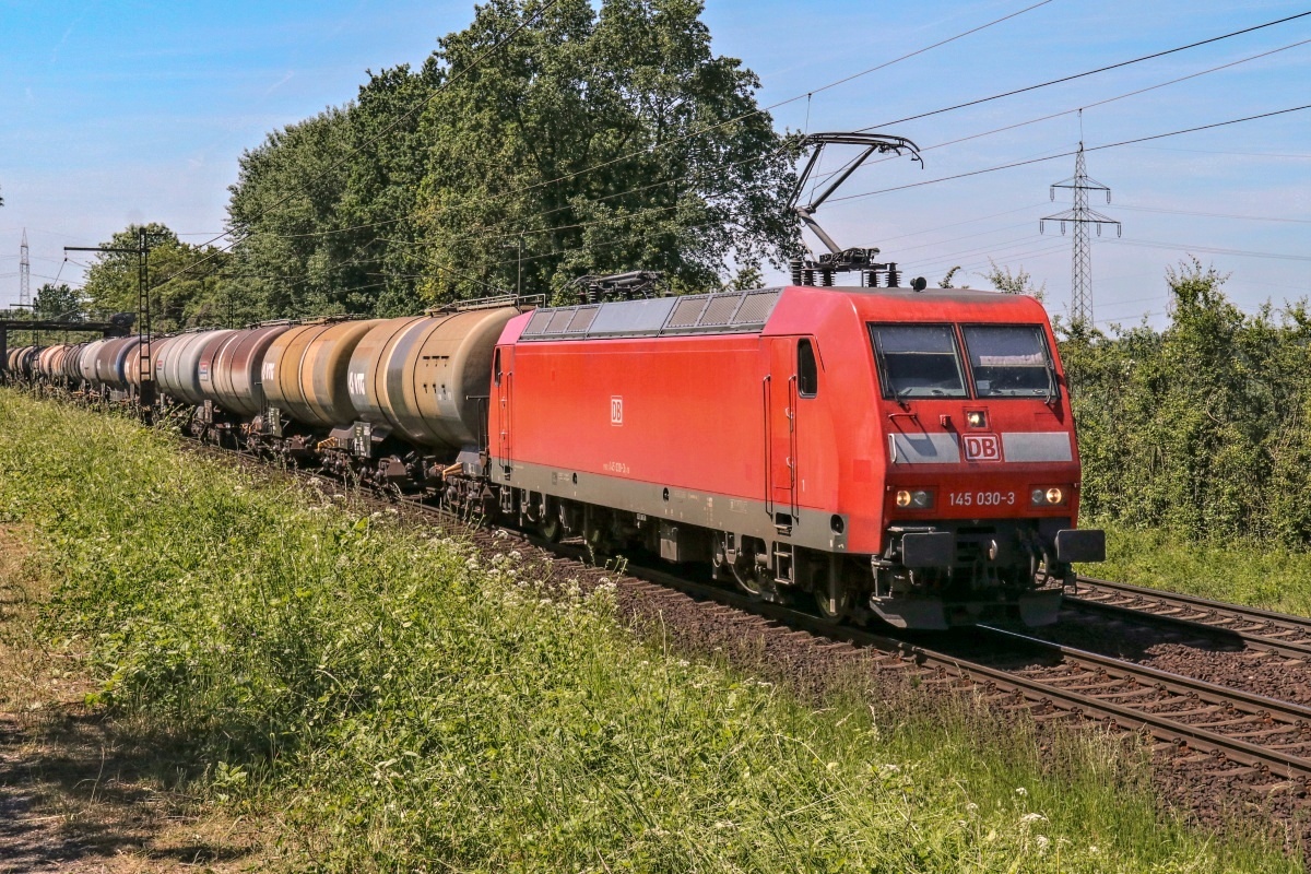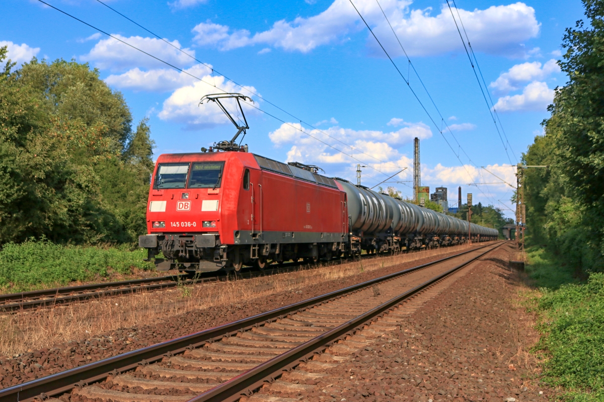 Dto. 145 036-0 am 14.08.2019. Die Lok war hier bei Anderten-Misburg (HMI) mit Kesselwagen Rtg.