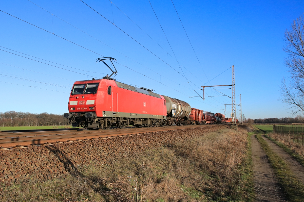 Dto. 145 033-7 am 05.02.2020. Hier war die Lok bei Lindhorst (HLH)