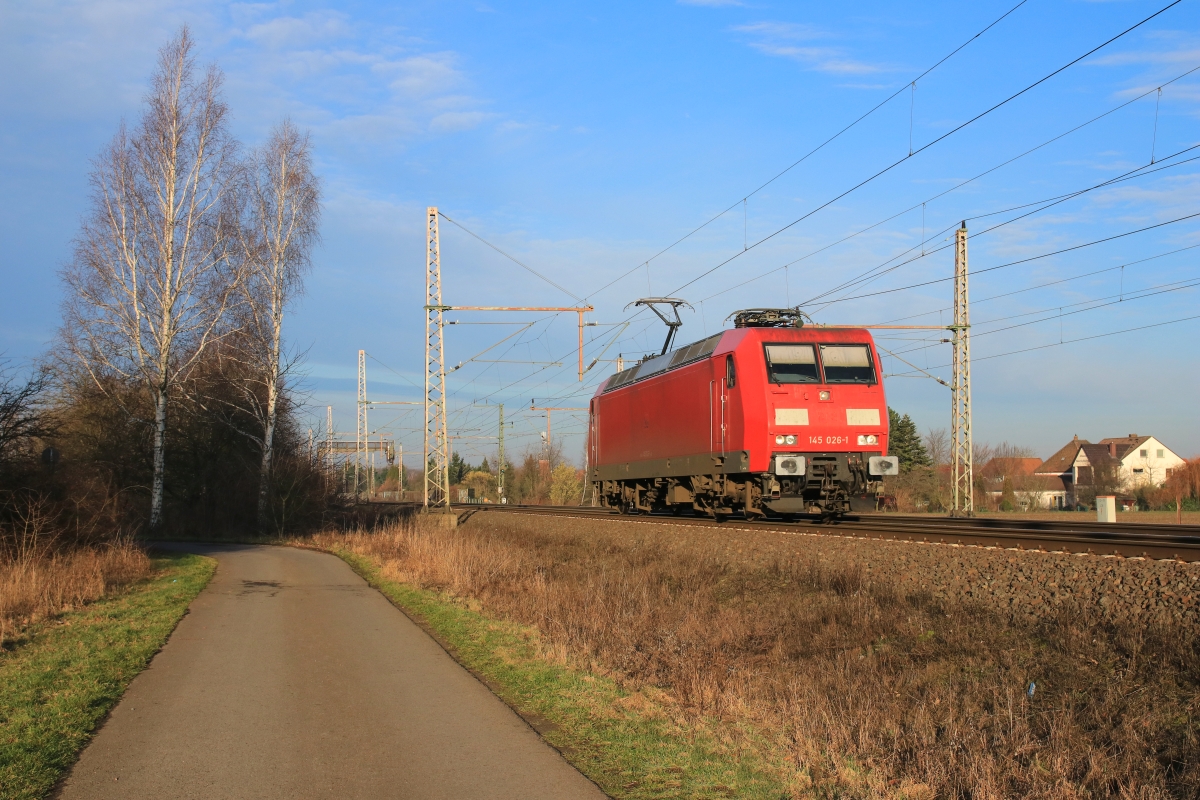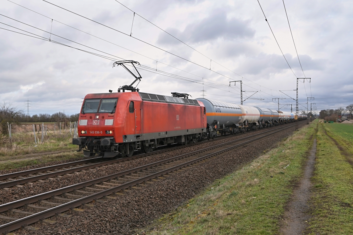 Dto. 145 036-0 am 12.02.2020. Die Lok war hier bei Klein-Gerau