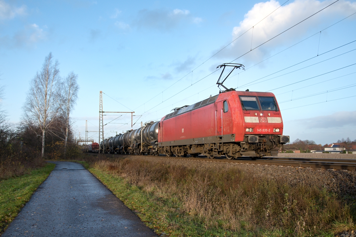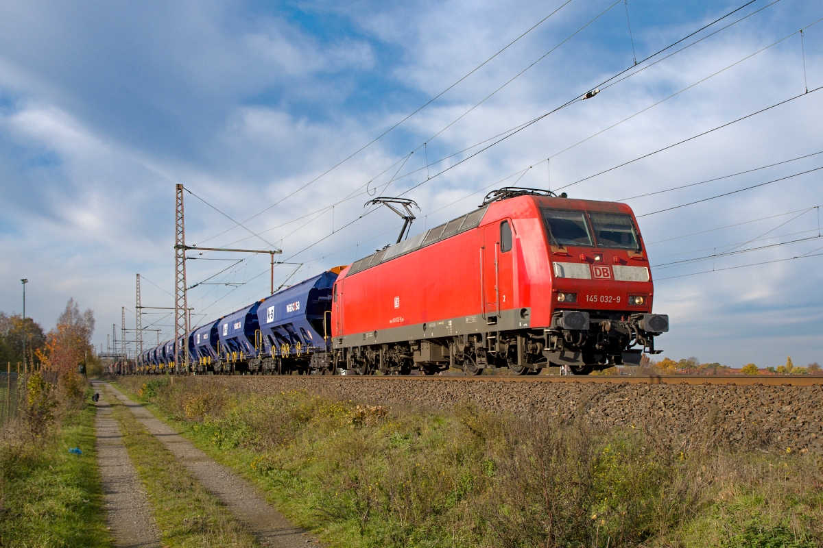 Dto. 145 032-9. Die Lok passierte hier am 14.11.2019 Dedensen-Gümmer (HDED) mit einem