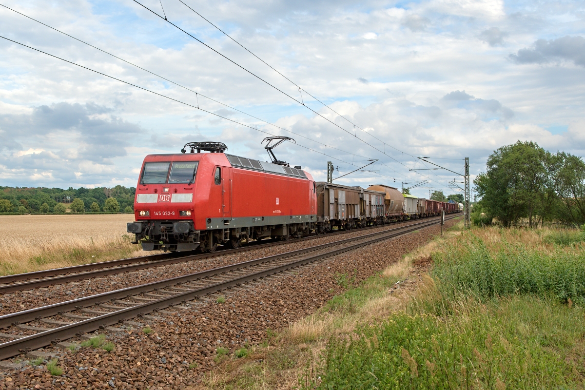 Dto. 145 032-9 am 09.07.2020 bei Glaubitz (DGLA) mit dem EZ 51608 von