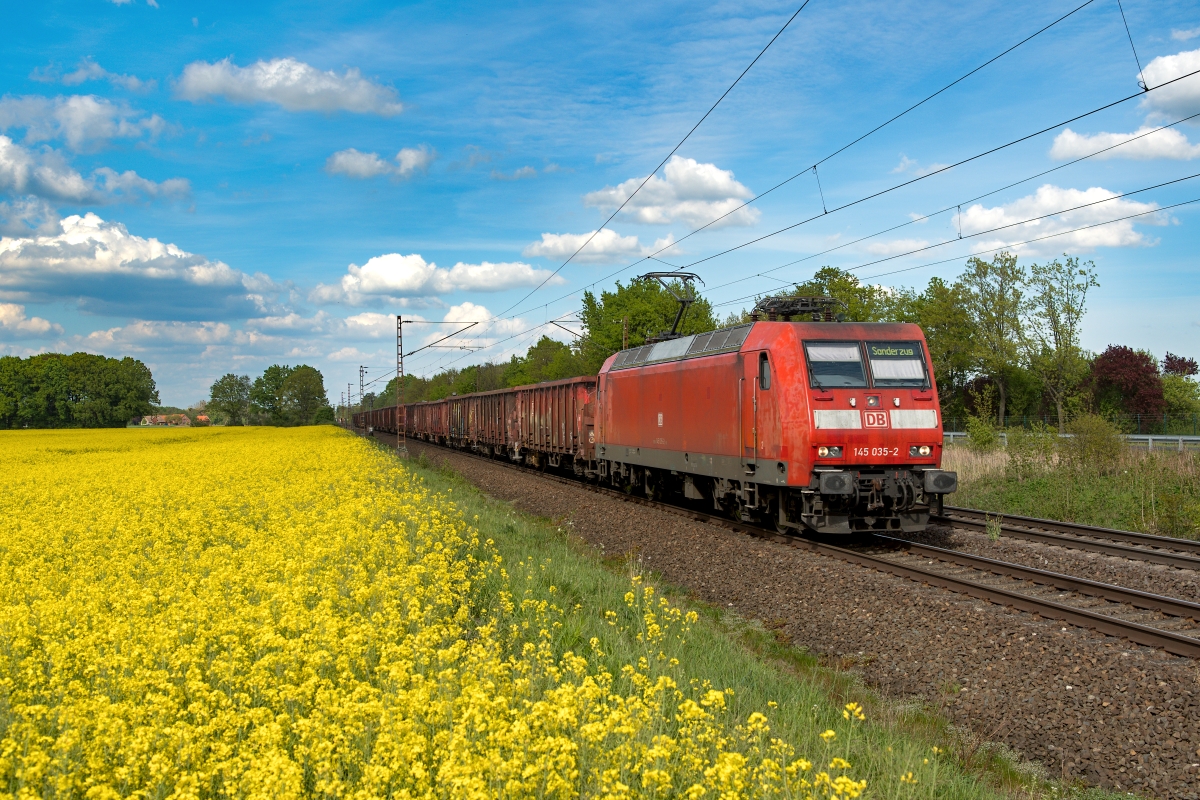 Dto. 145 035-2 am 30.04.2020. Hier war die Lok bei Bückeburg (HBKB) mit dem