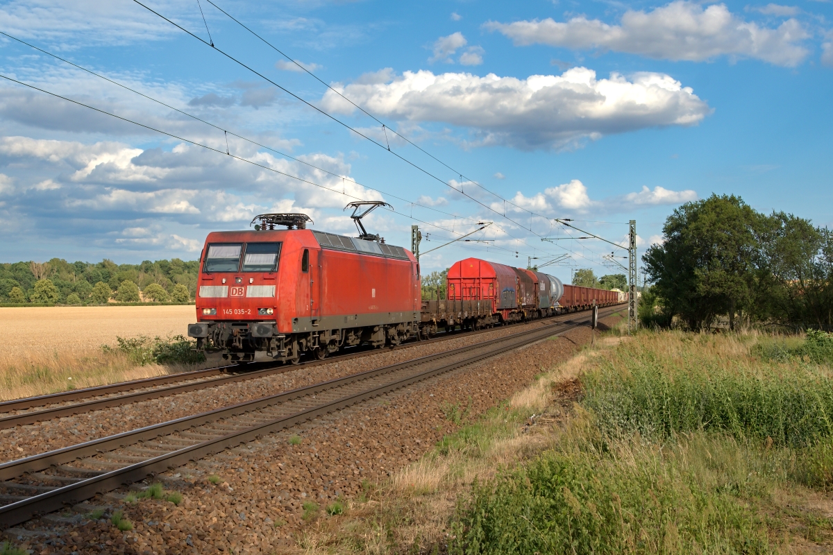 Dto. 145 035-2 am 07.07.2020 bei Glaubitz (DGLA) mit dem EZ 51608 von