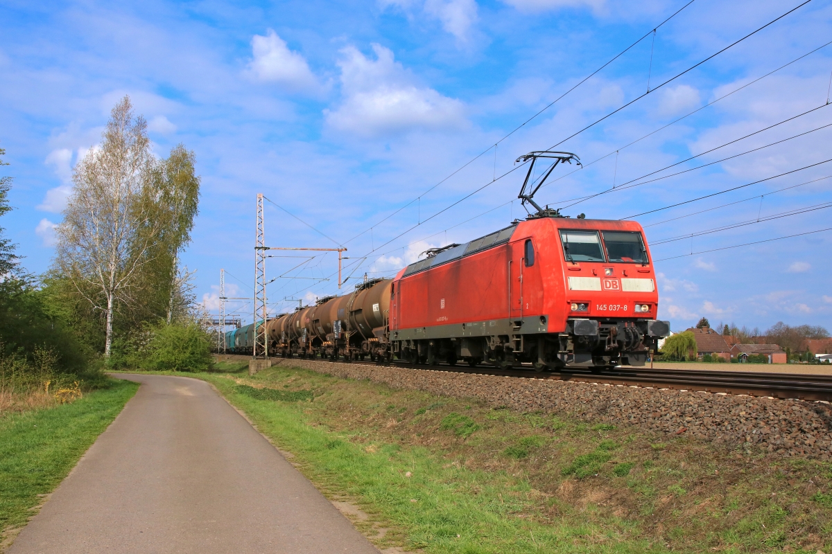 Dto. 145 037-8 am 11.04.2019. Hier passierte die Lok Dedensen-Gümmer (HDED) mit