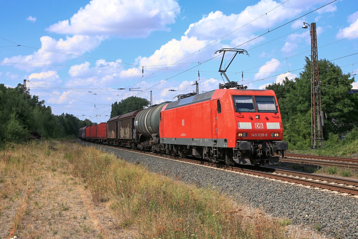 Dto. 145 038-6 am 10.08.2018 mit einem Mischer Banteln Richtung