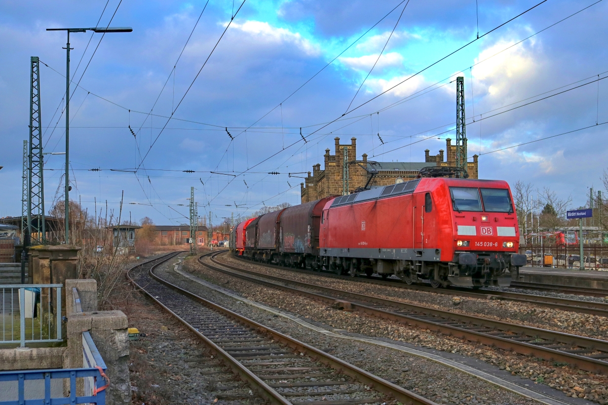 Dto. 145 038-6 am 16.02.2018. Hier passierte die Lok den Mindener