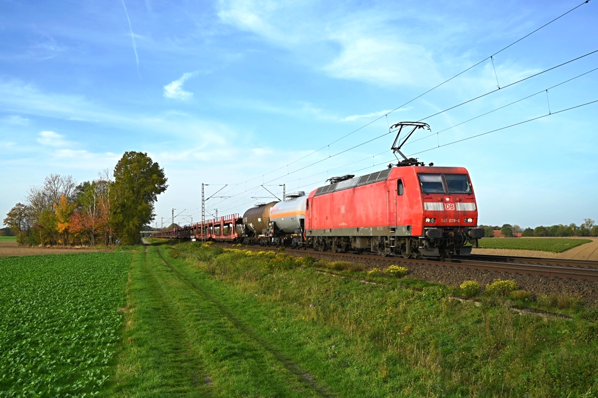 Dto. 145 033-7. Die Lok war hier am 14.10.2019 bei Bad Oeynhausen (HOY) mit einem H-Wagenzug Rtg.