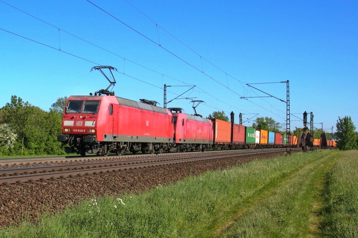 145 040-2 am 08.05.2018. Hier war die Lok bei den Elzer (HELZ) Riehebrücken mit 145 024-6 (NVR: