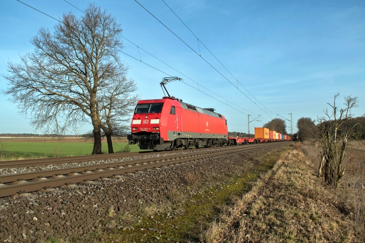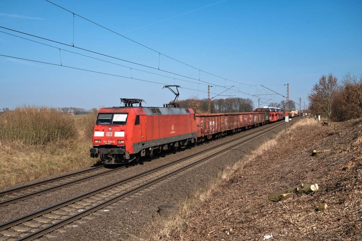 Dto. 152 089-9 am 12.03.2022 bei Bückeburg (HBKB) mit einem EZ Rtg.