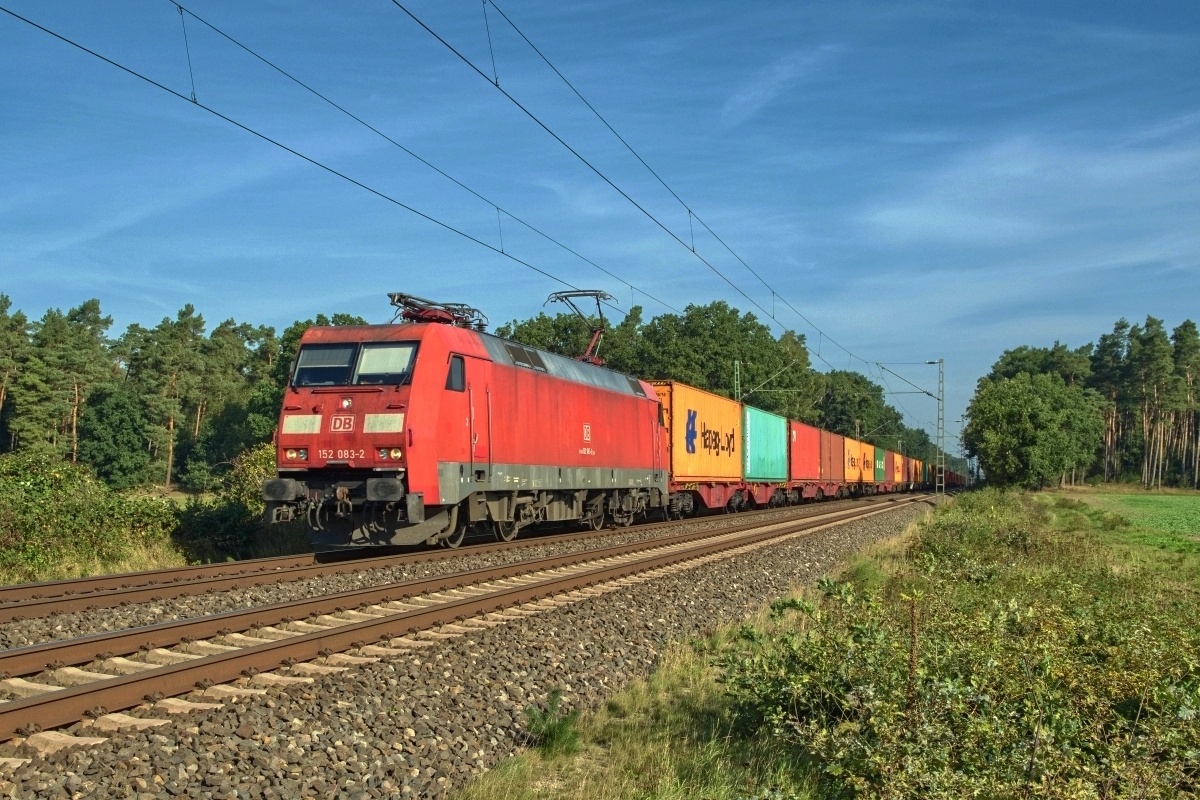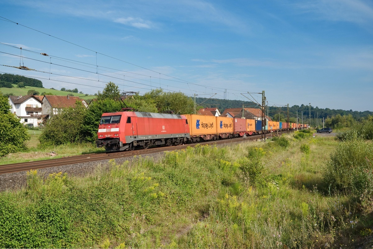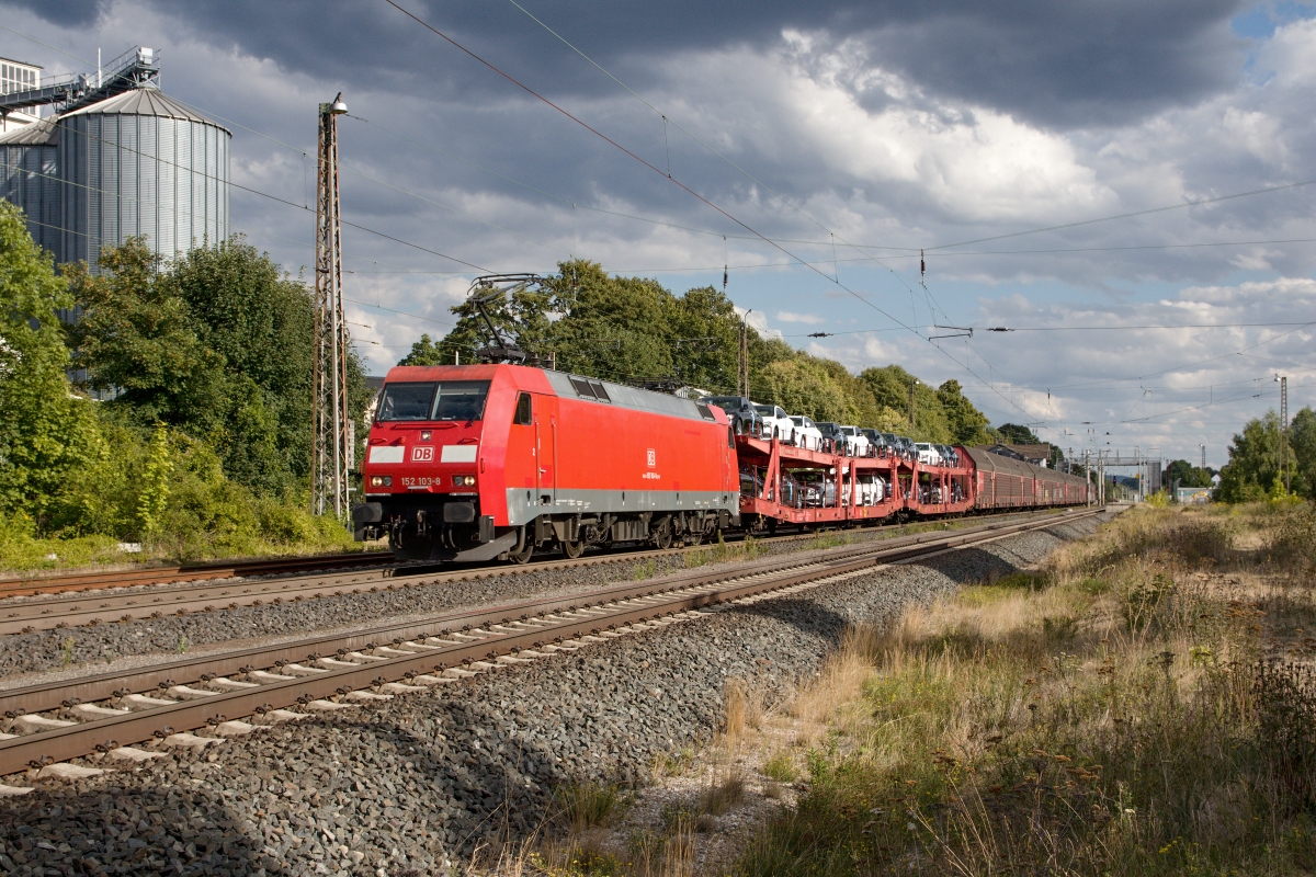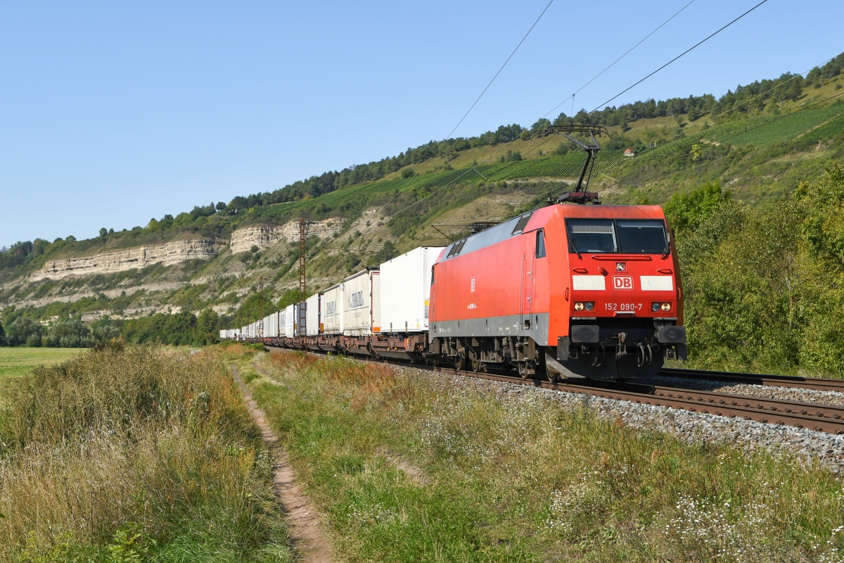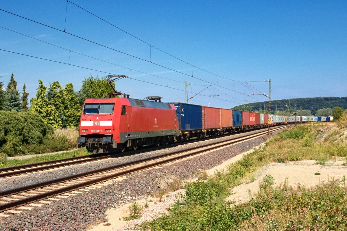 Dto. 152 108-7 früh morgens am 23.08.2024 bei Karlstadt (NKA) mit einem KT