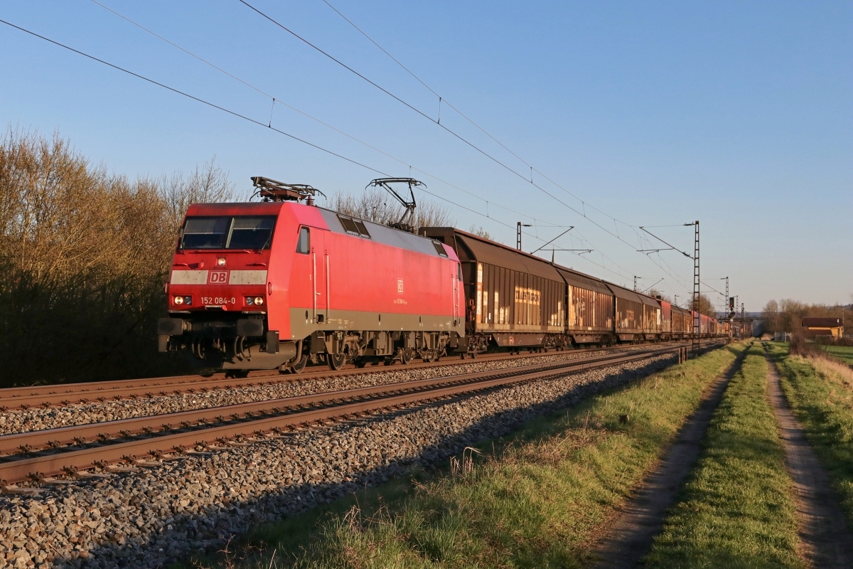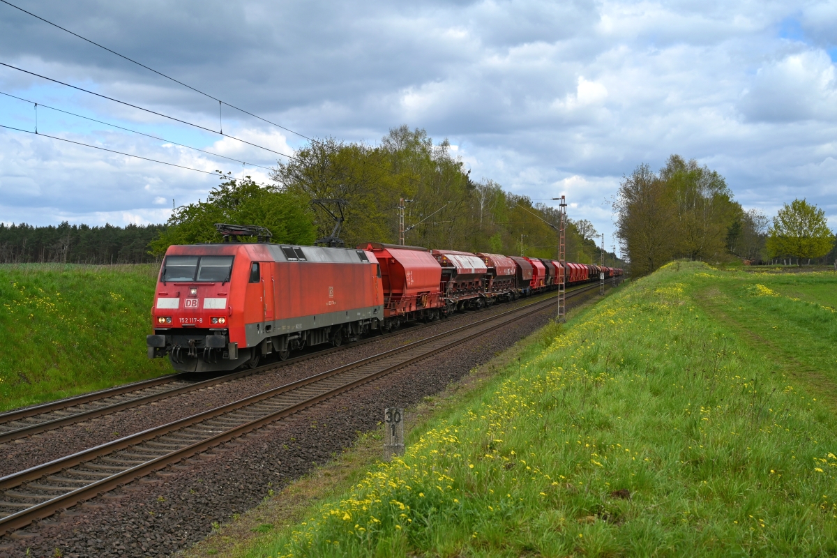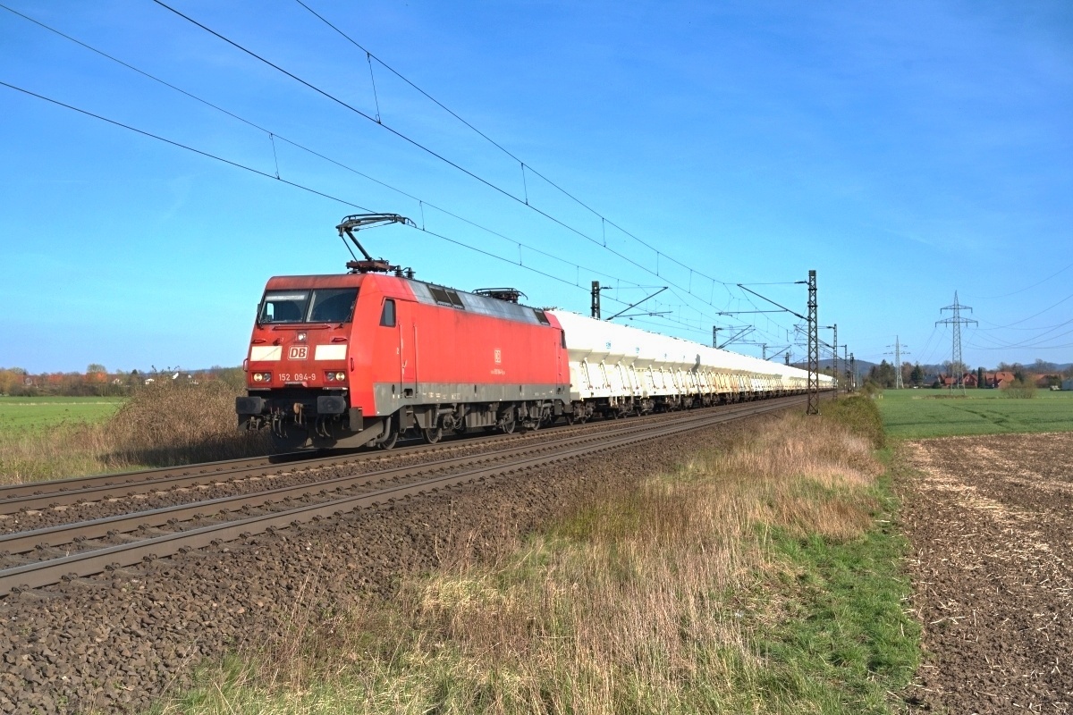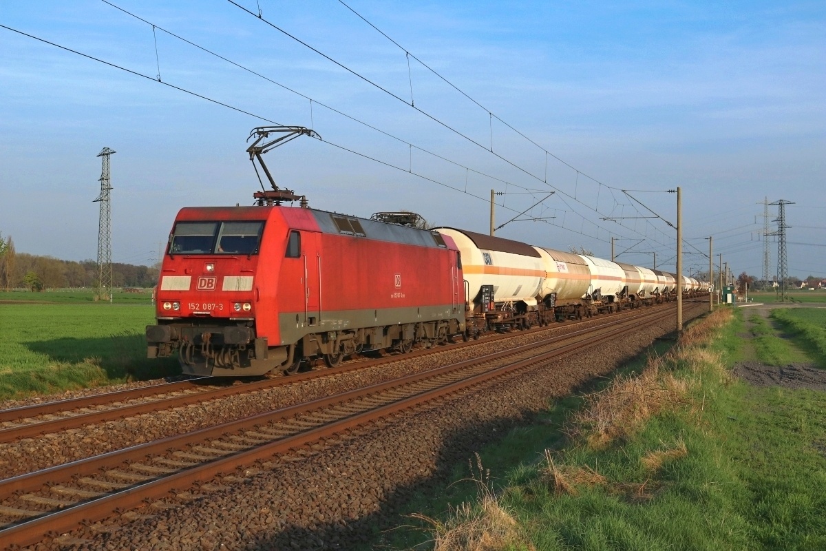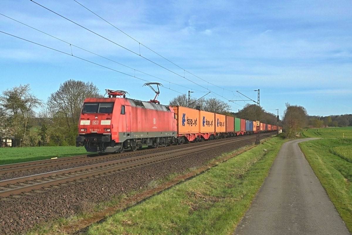 Dto. 152 094-9 am 11.04.2022 bei Bückeburg (HBKB) Evesen mit einem Ganzzug