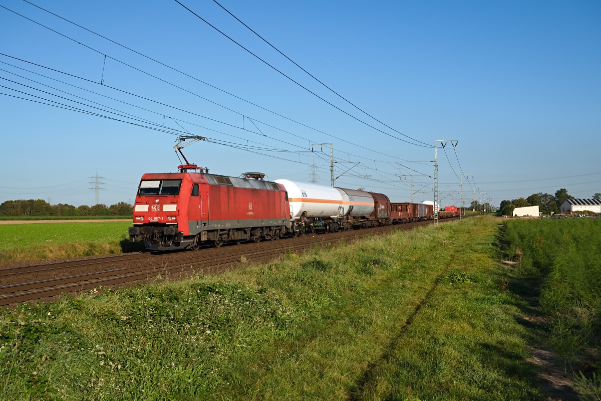 Dto. 152 087-3 im Abendlicht am 26.09.2023 bei Klein-Gerau (FKGE) mit einem