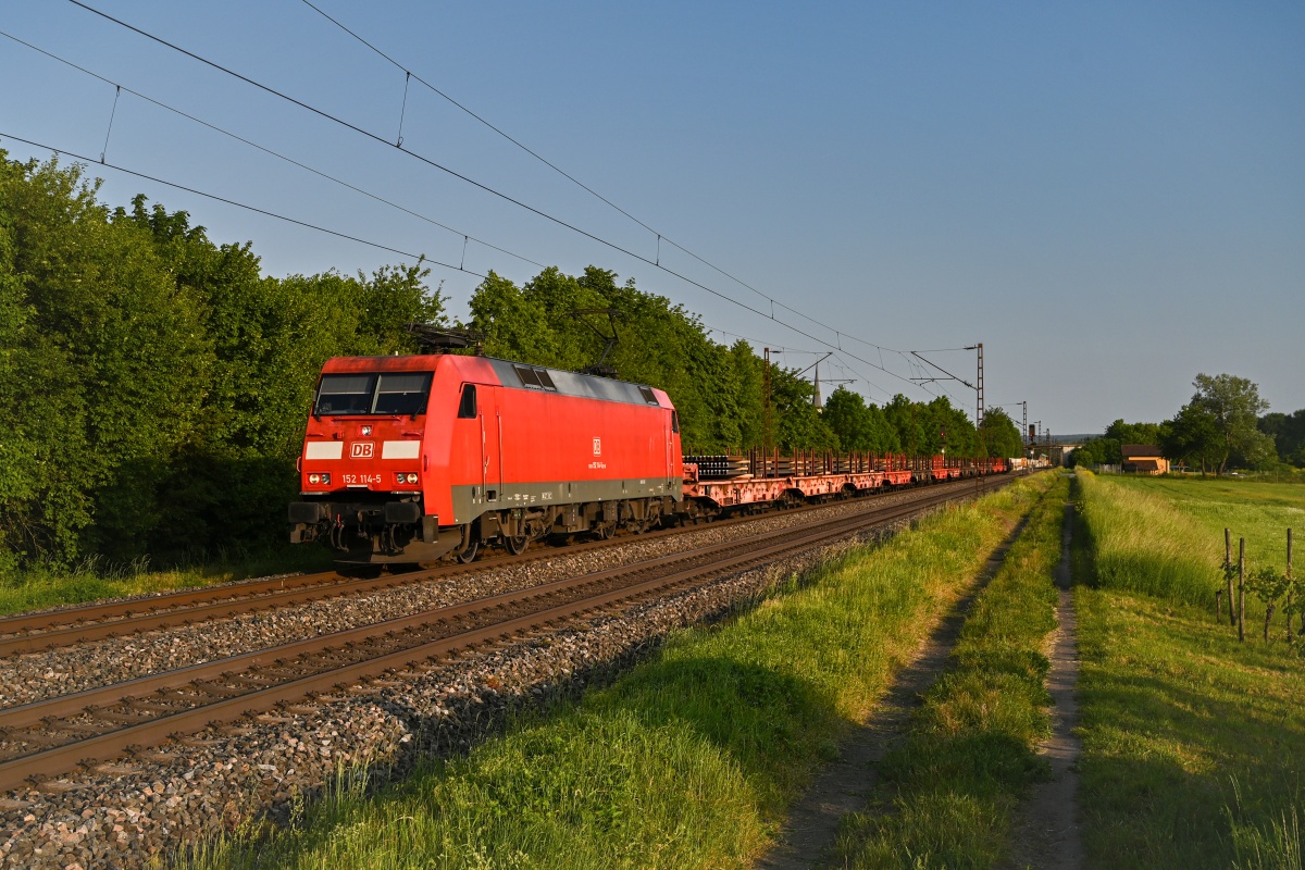Dto. 152 114-5 am 25.06.2023 im Abendlicht bei Thüngersheim (NTHM) mit einem