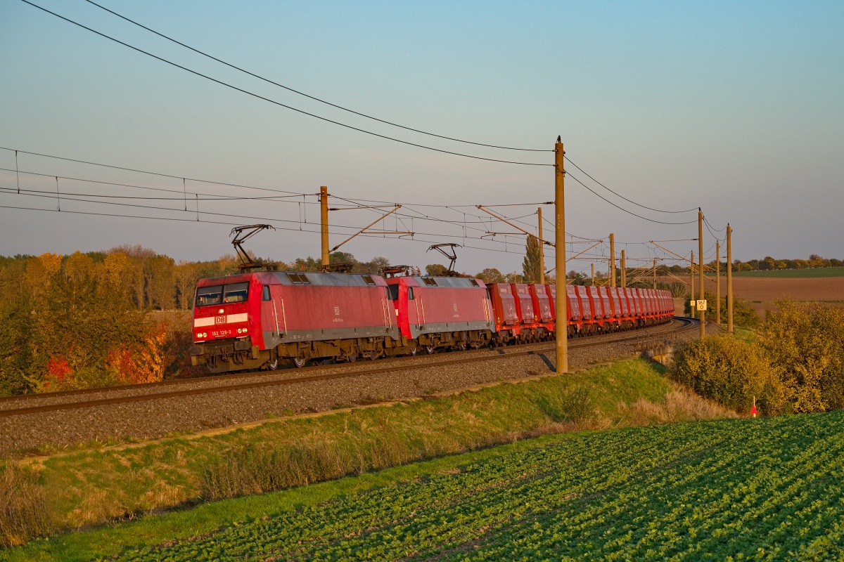Dto. 152 129-3 kurz vor Sonnenuntergang am 24.10.2024 bei Ovelgünne (LOV)
