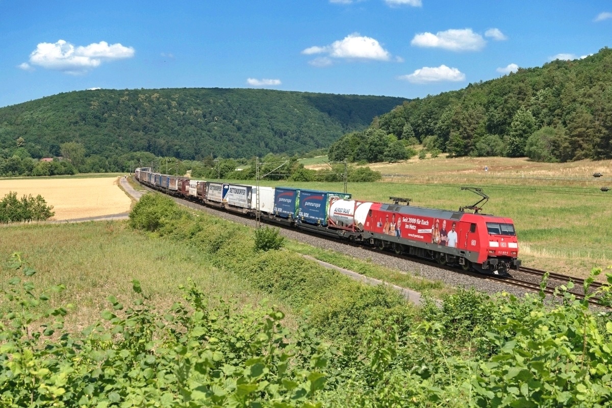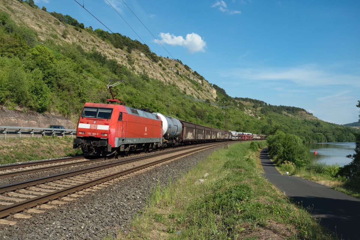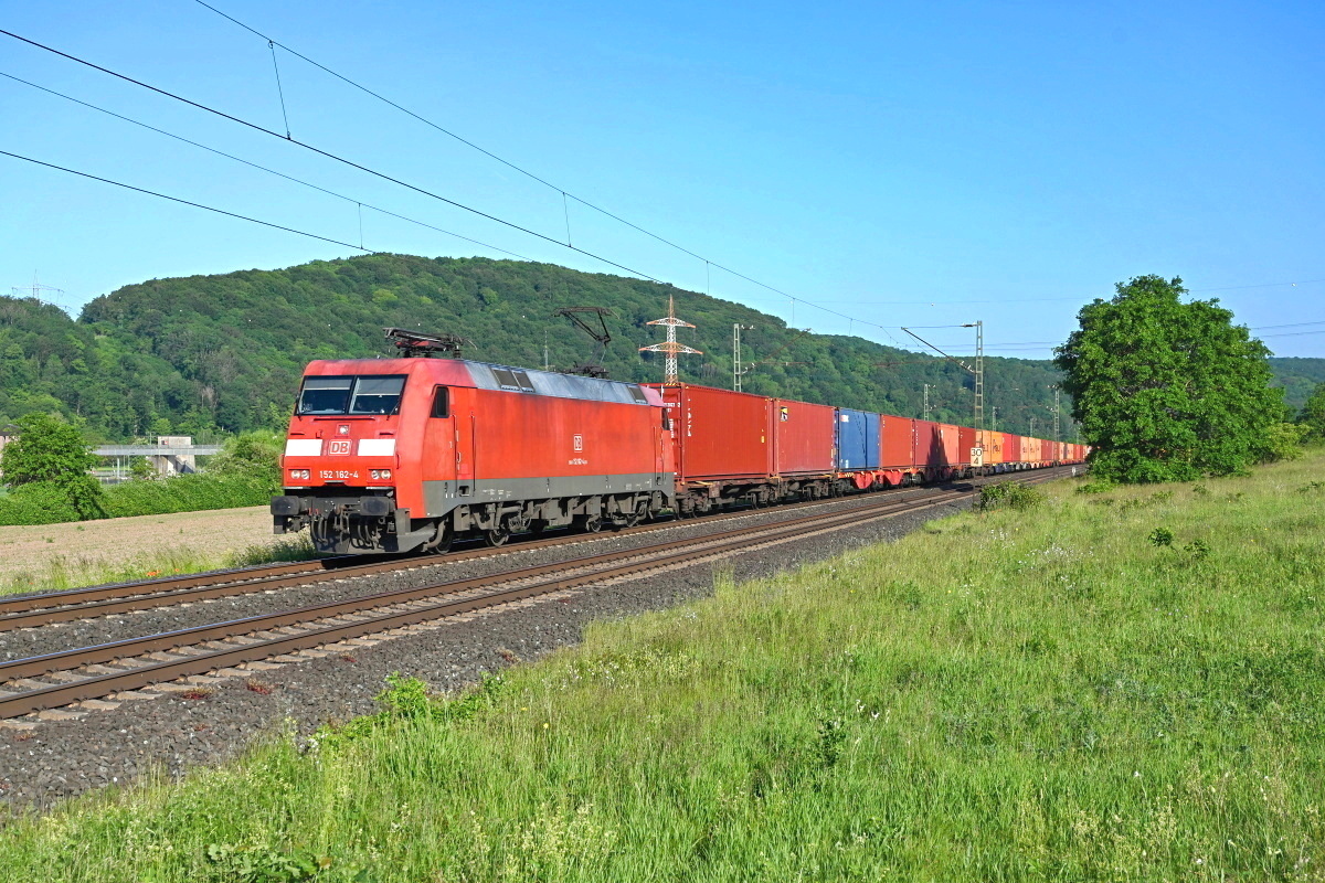 Dto. 152 162-4 am 26.05.2023 im Maintal bei Harrbach mit einem KT Rtg.