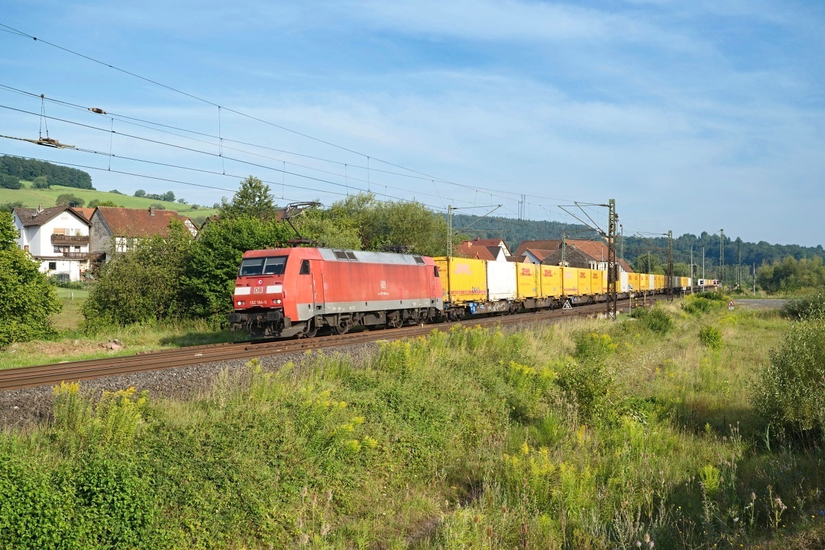 Dto. 152 164-0 früh morgens am 31.07.2024 bei Oberhaun (FOBN) mit dem DHL