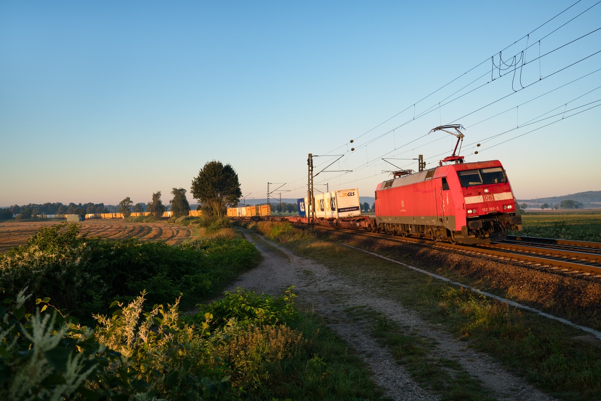 Dto. 152 190-5 zum Sonnenaufgang am 08.09.2023 bei Nordstemmen-Poppenburg