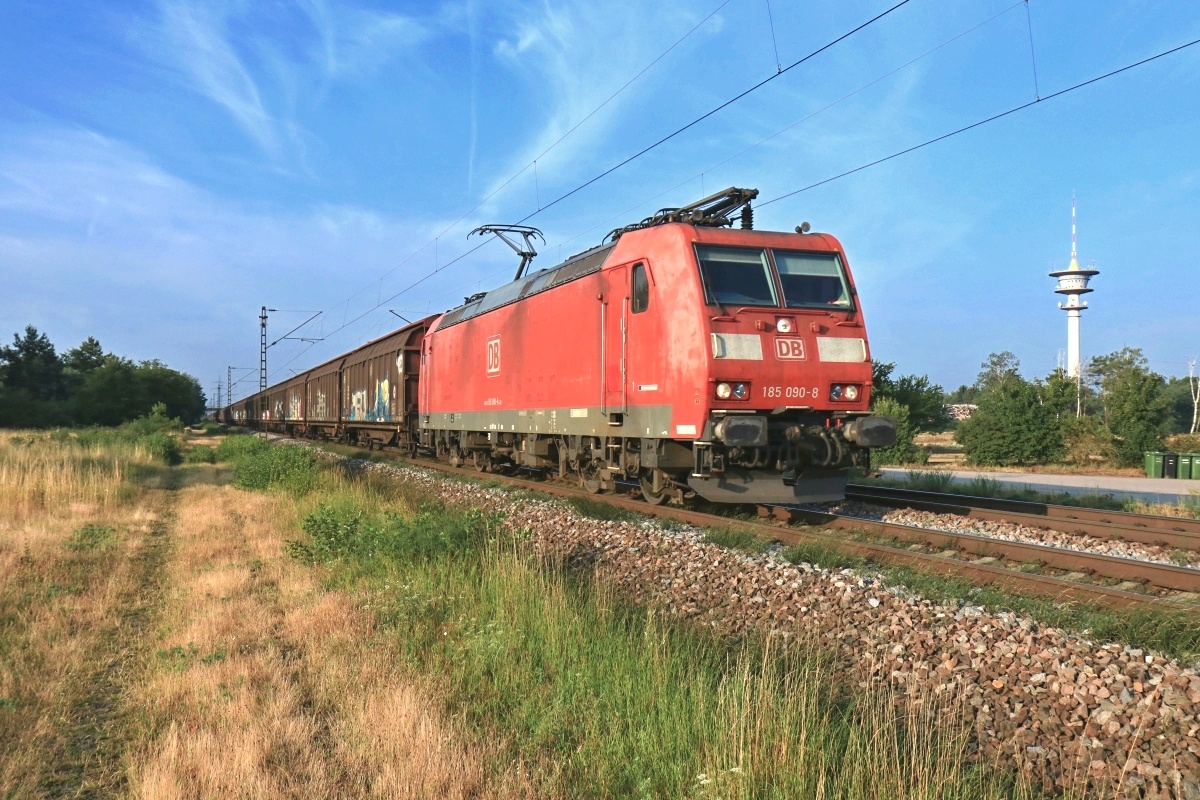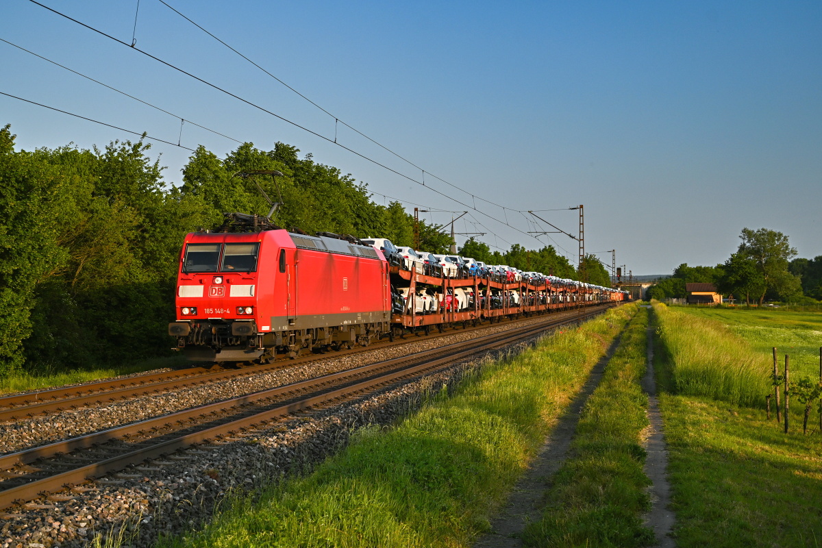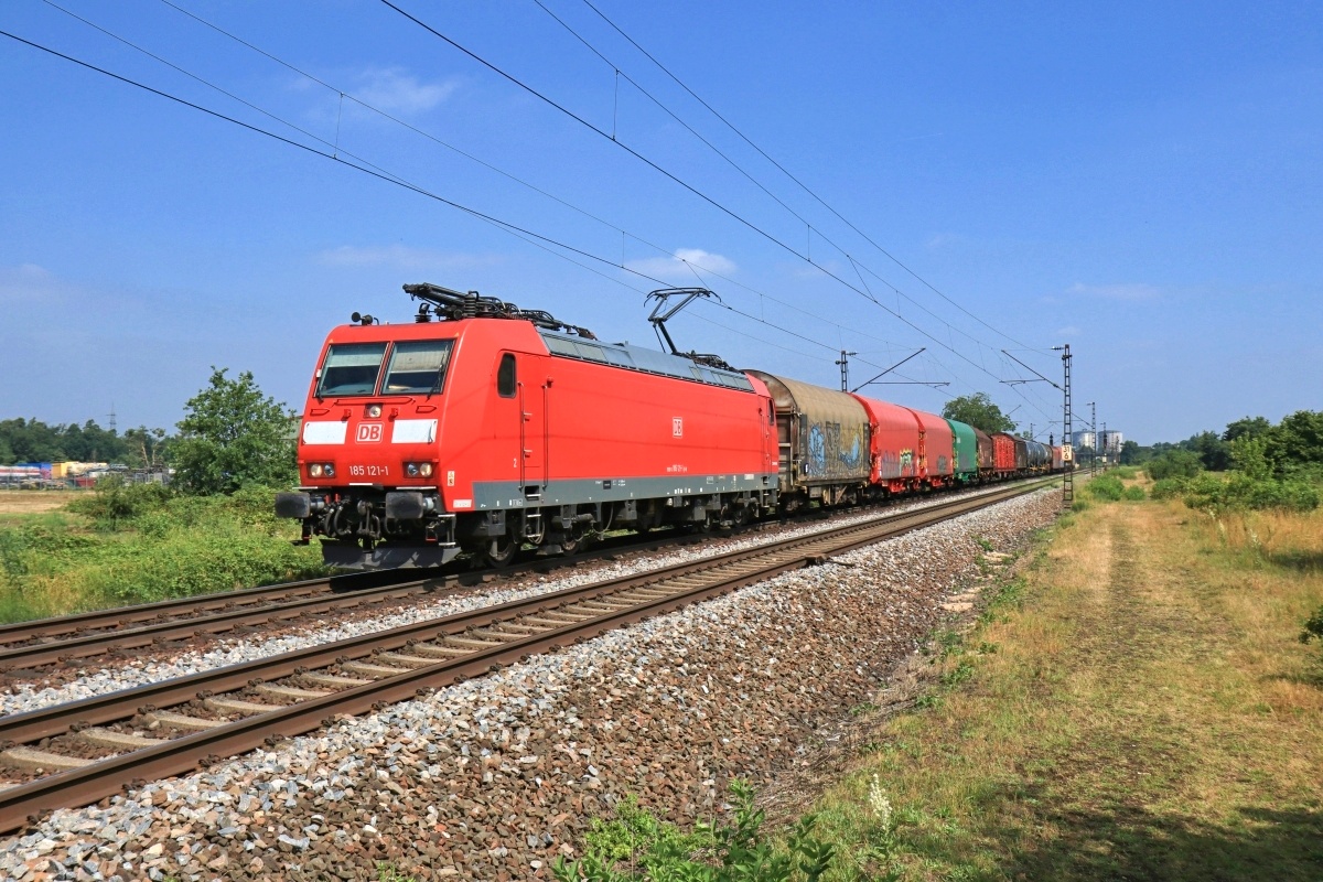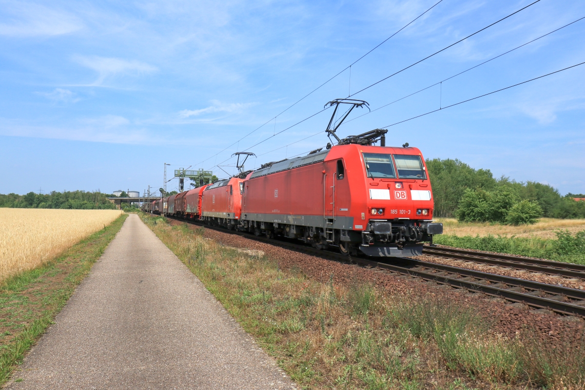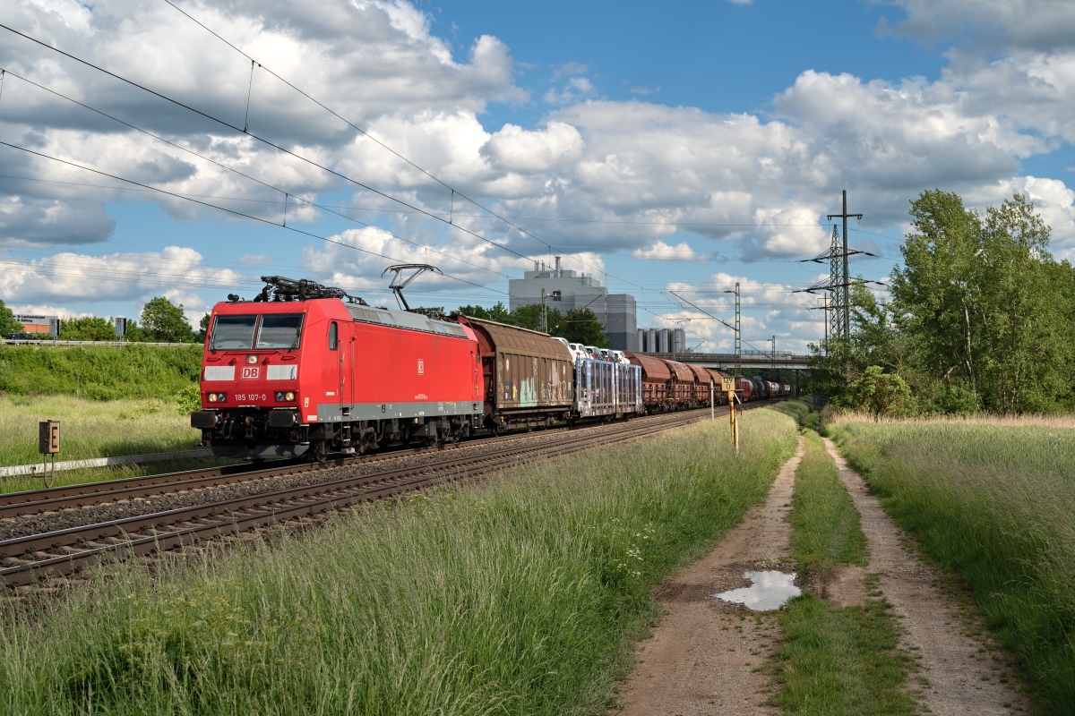 Dto. 185 148-4 am 29.06.2021 bei Altheim (FAT) mit dem EZ 51893 von Mannheim