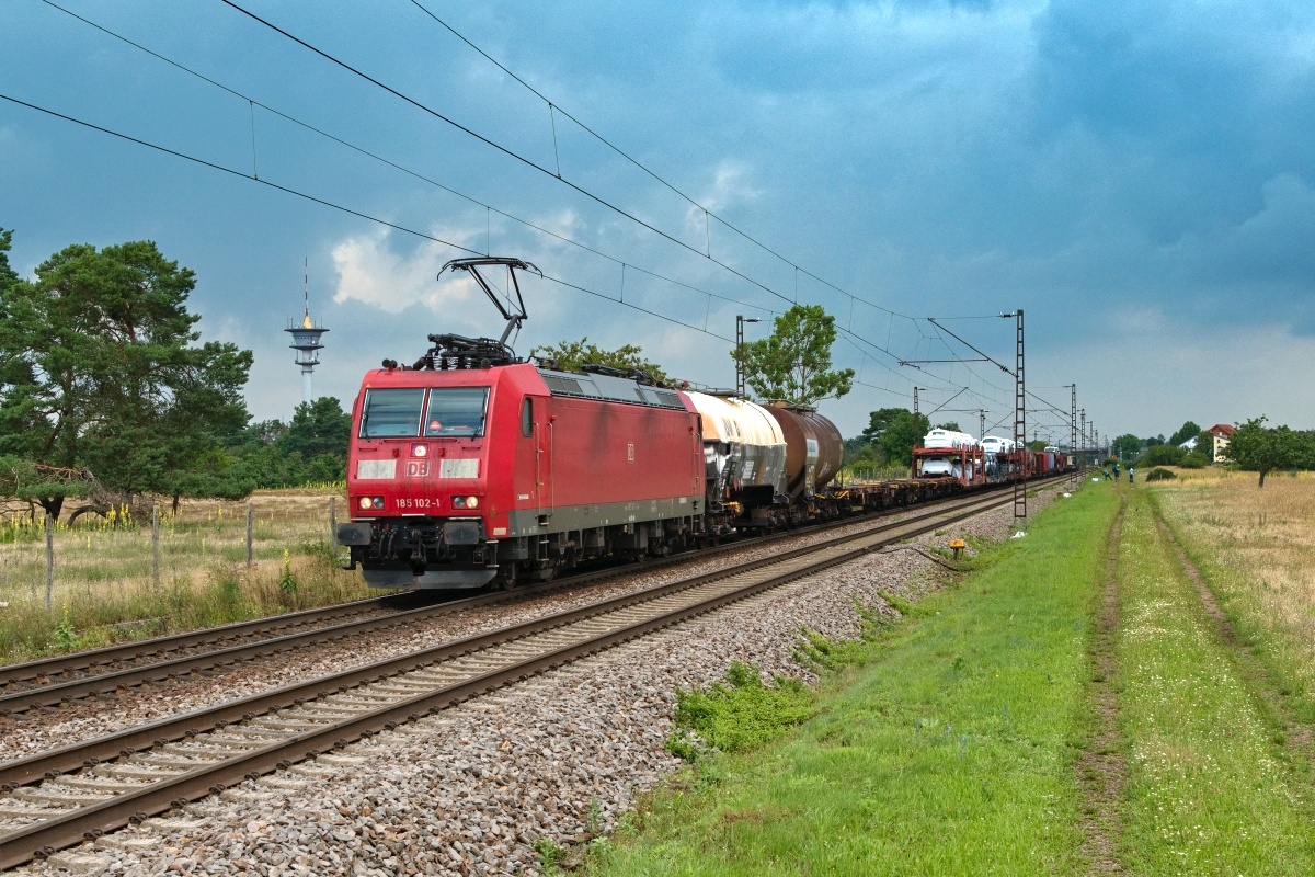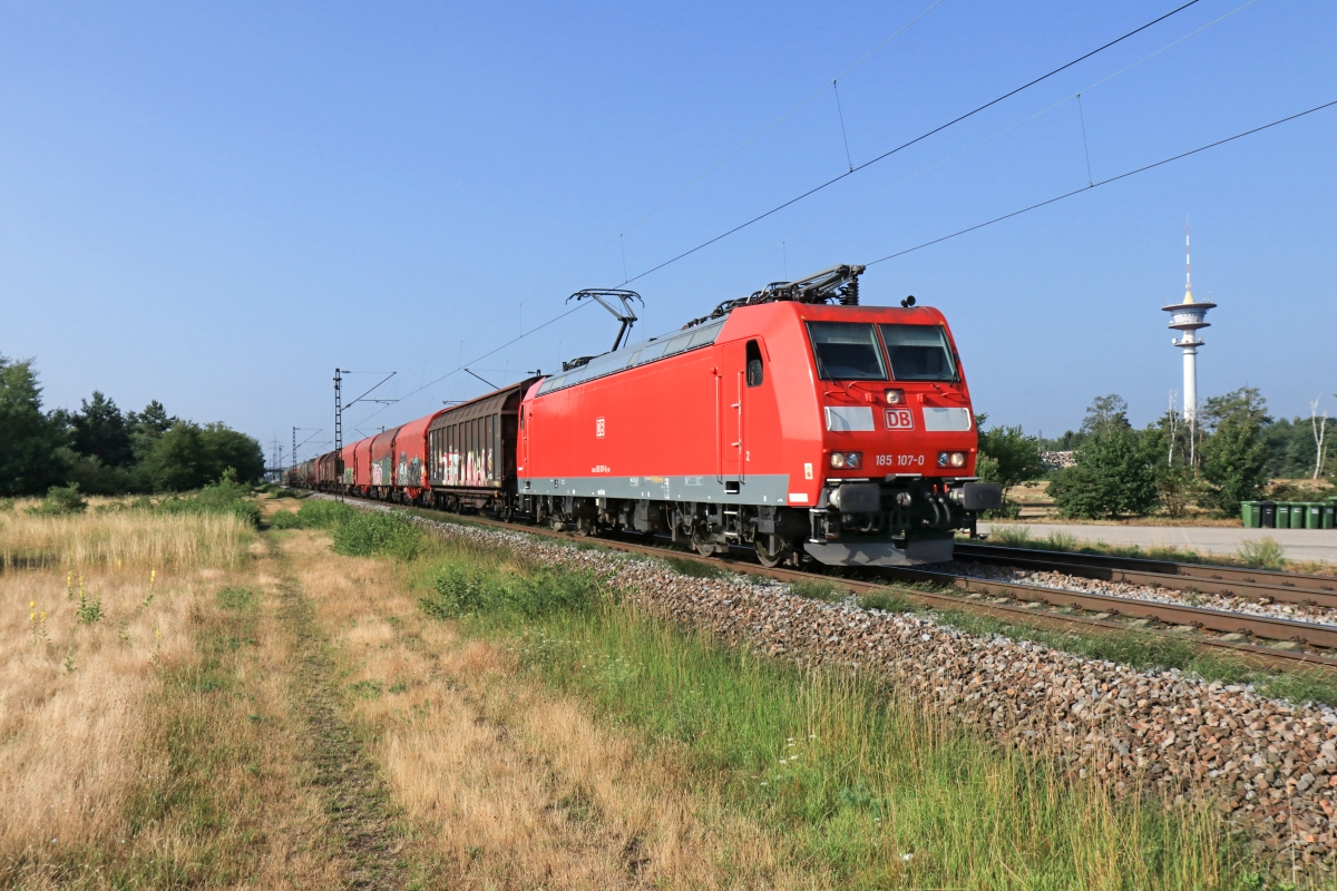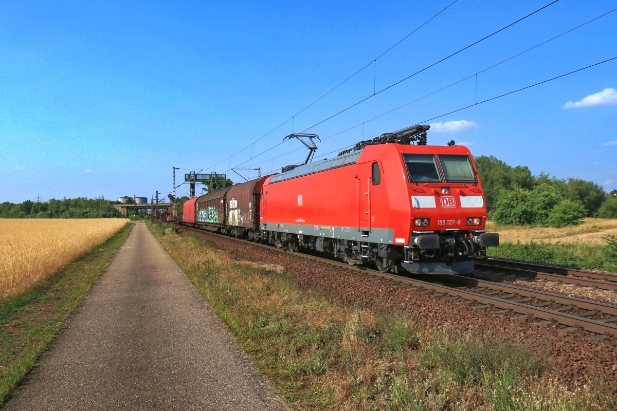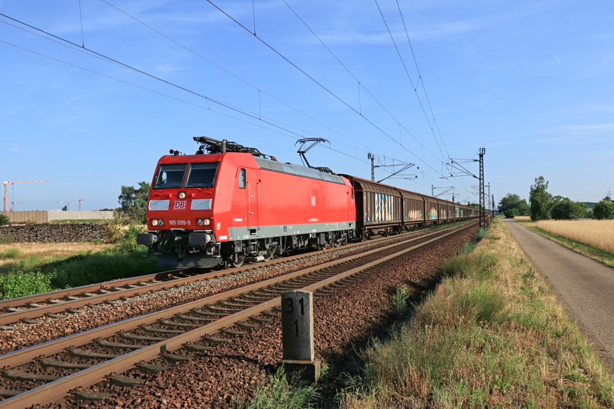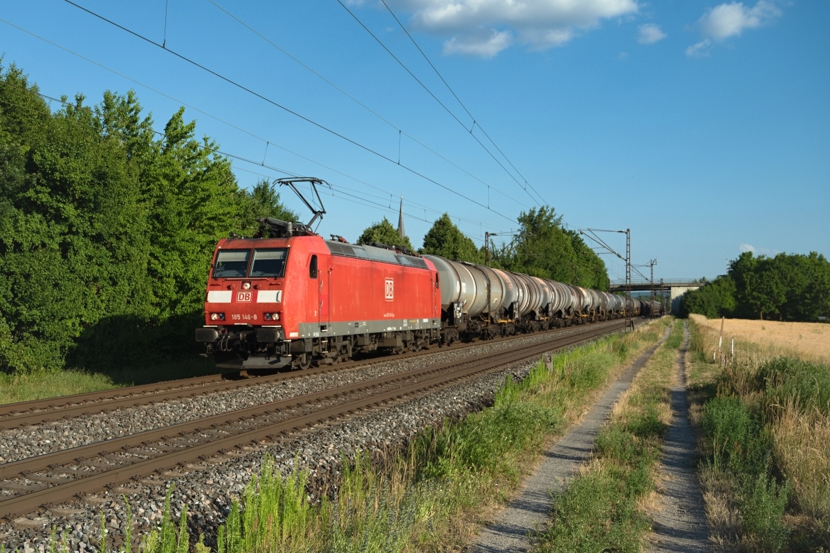 Dto. 185 148-4 am 29.06.2021 bei Altheim (FAT) mit dem EZ 51893 von Mannheim